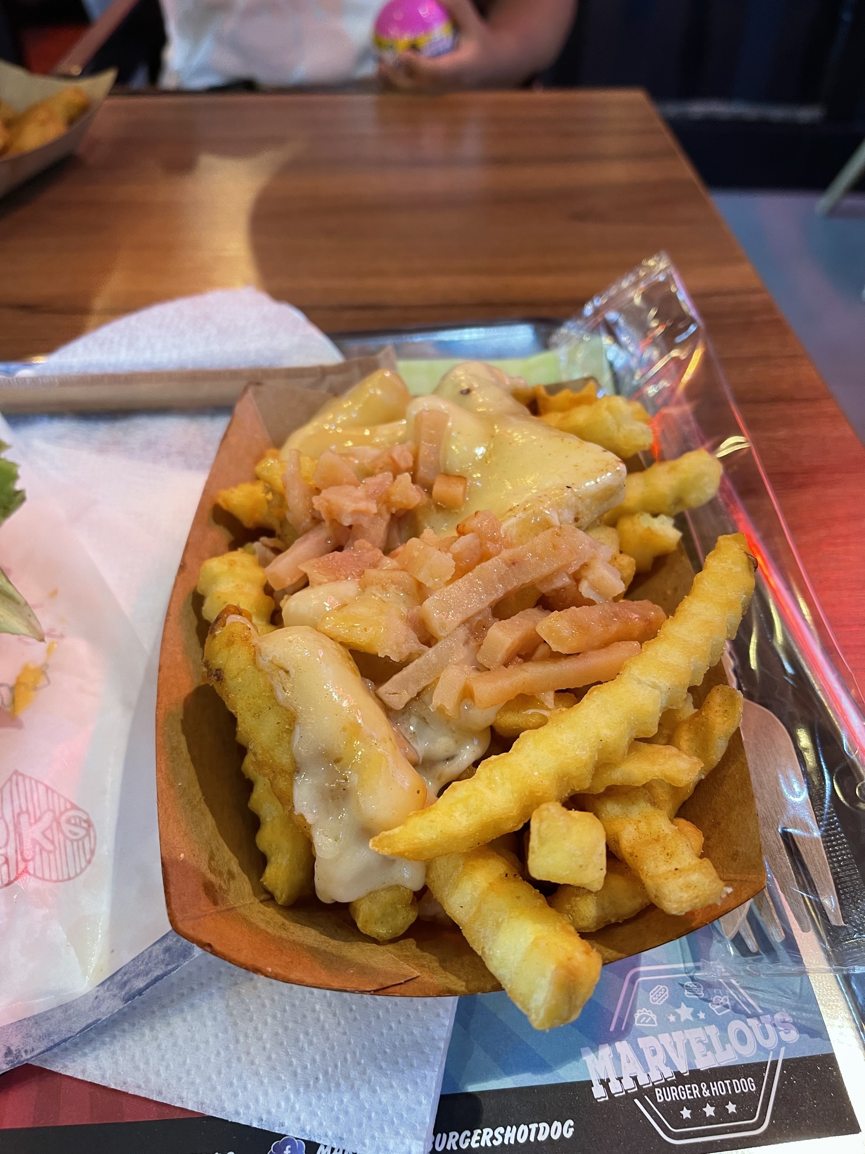 Je suis allé à marvelous le 30 mai 2024. Le pain du hot dog était sec on aurait dit le pain de la veille, le fromage pas bon non plus. Le ketchup plus le goût d’eau que de ketchup.les nuggets rempli d’huile même pas bon. Et cerise sur le gâteau la sauce pour les nuggets périmé depuis le 27 et le tiramisu du 29. Je ne recommande pas du tout!