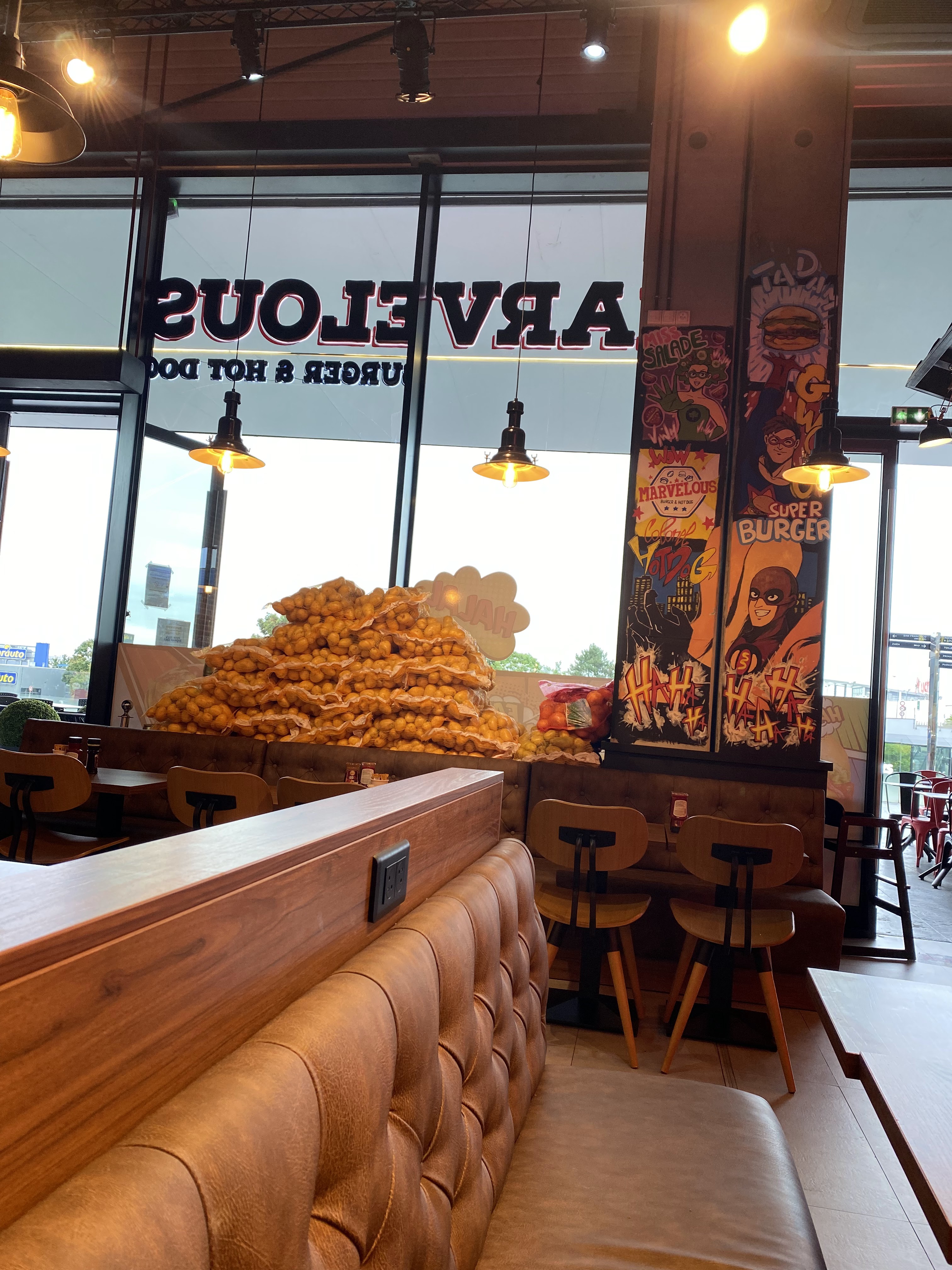 Marvelous Burger & Hot dog est un fast-food. Vous commandez sur des bornes comme Macdo ou Burger King. Pour récupérer la commande on vous donne un bipeur qui sonne dès que votre commande est prête. Concernant le prix, je trouve que cela est un peu cher pour un fast-food. La nourriture est pas spéciale extra mais bon ça peut dépanner. Les frites maison par exemple sont pas extra.. après chacun ses goûts. Concernant le hot dog il avait beaucoup trop de sauce dessus. Dommage.
