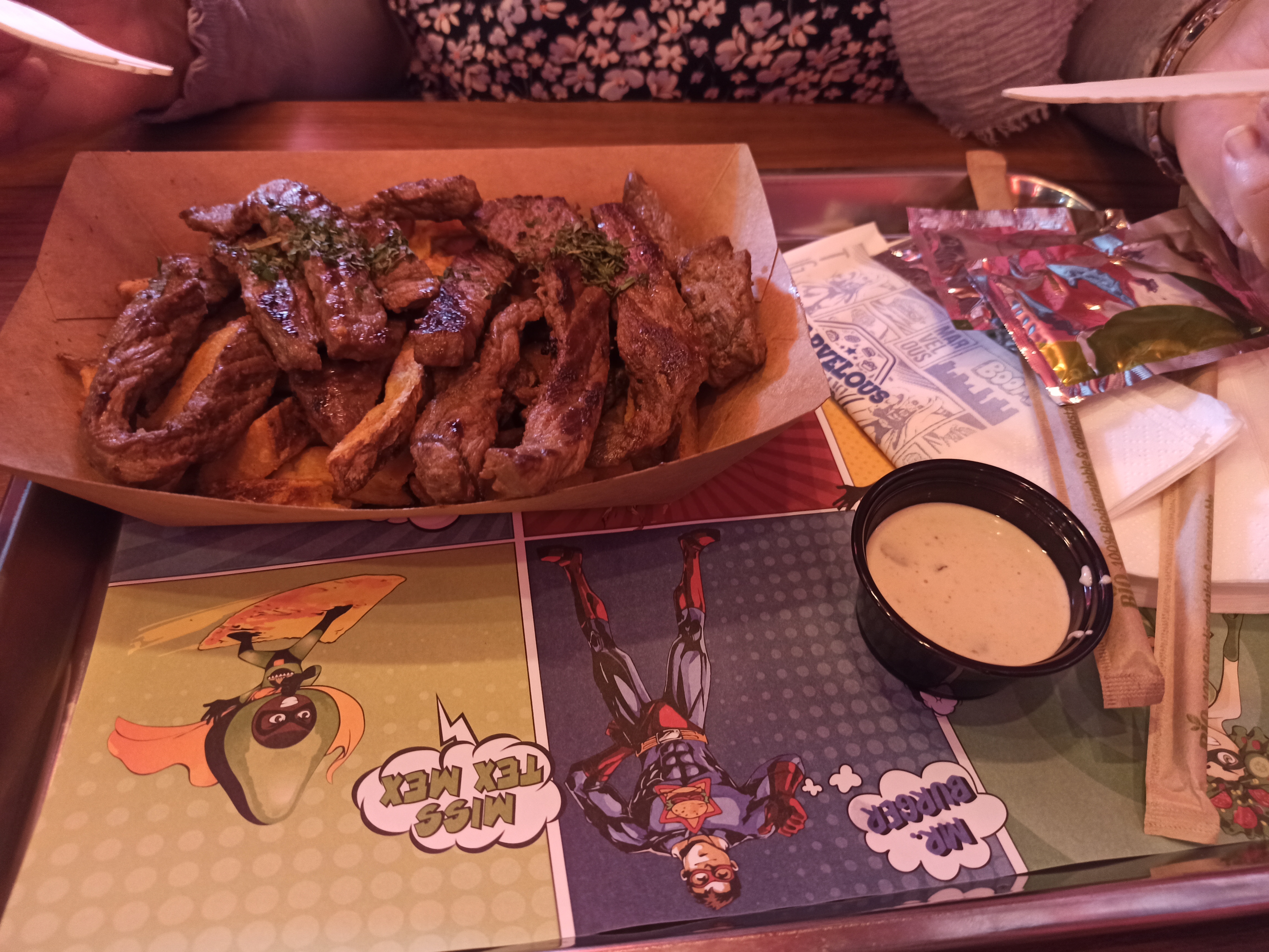 Les quesedillas au poulet étaient un 4/5 mais le wrap mexicain était moyen (le poulet manque de saveur et le wrap a besoin de sauces supplémentaires pour être comestible). Par contre les frites maison où c'est de la bombe ! Si bon! Le personnel était super et le service était rapide.