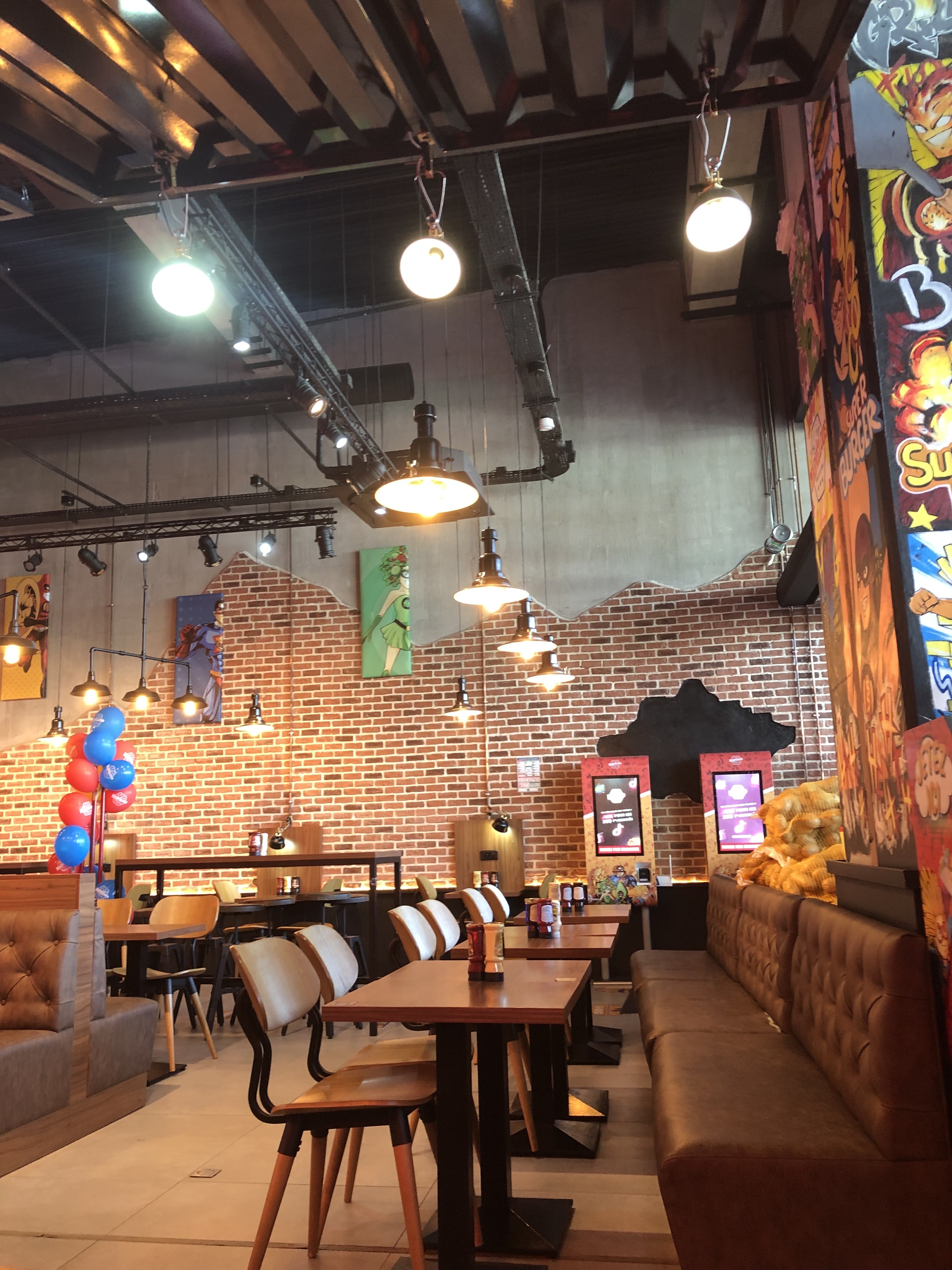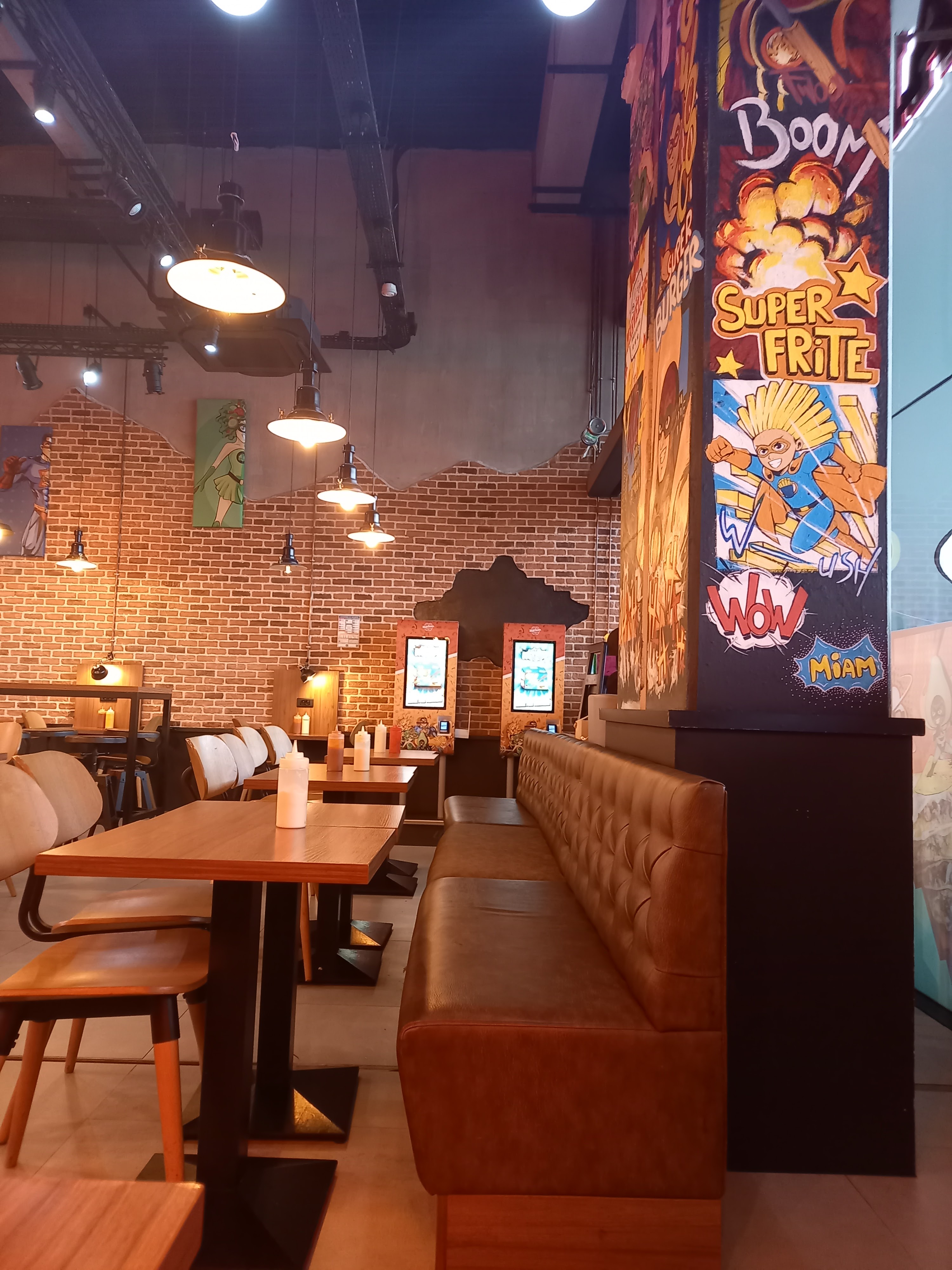 Le décor est plutôt bien choisi, couleurs vive et néons, (chambre de garçon fan de marvel) staff très sympa mais hormis ça, le prix et le goût n'est pas au rendez-vous. Sur le menu, le quesadillas très étouffant et difficile à manger, la viande hachée quelques morceaux de gras, les frites zig zag sèches, boissons indispensables pour faire passer ça. Pour finir le bulble tea n'est pas un vrai bulble tea, mais une réplique (boules liquides et non pas de boules de tapioca comme l'original, mais correct malgrès tous. Seul B mol le prix plus cher qu'un fast-food classique, pas plus bon, mais un peu plus original....