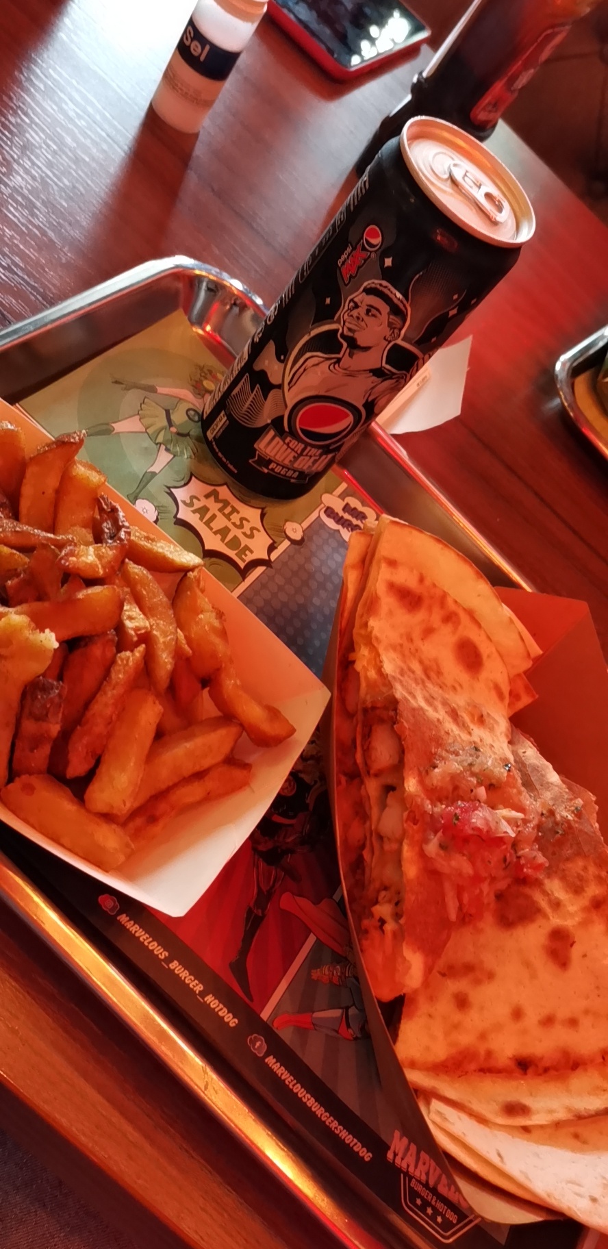 Haut haut haut Je dois visiter, je commande des quesadillas et ma femme a commandé une petite salade mais c'est bien meilleur que Kfc md ou bk et surtout meilleur goût et les frites sont faites maison 👍🏼