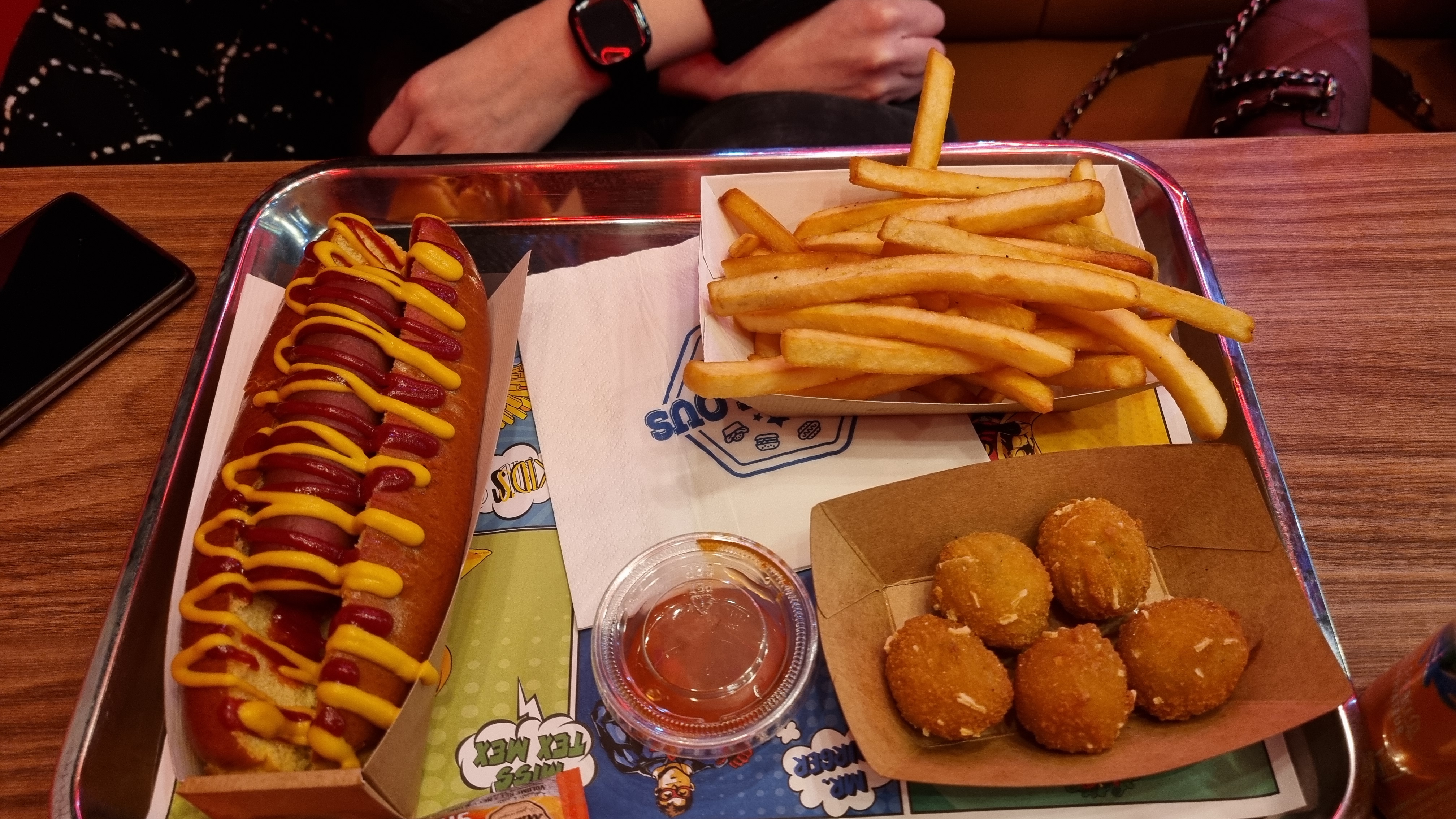 Je dirais que si vous préférez le visuel au goût , allez y. Franchement moi qui aime la streetfood, je suis déçu de ce restaurant. Le cadre est beau je n’ai rien à re dire là dessus , mais ce que j’ai commandé était vraiment pas bon, j’ai pris 3 nems ( ça a la rigueur ça va ) Les boules tomates mozza rempli d’huile , et les frites pas du tout bonnes , et le fameux hot dog un croc m’a suffit , c’était vraiment pas bon… essayer de faire quelques choses de frais et utiliser de bon produits au vu du prix de vos menus qui sont assez élevés.