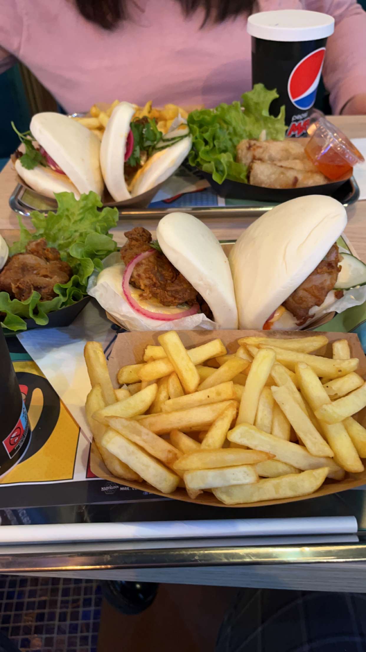 Extrêmement cher pour ce que c'est ! La taille du bao est une blague. Un mini Bao surgelé (plus petit que la barquette de frite 👌🏼) garni d'un seul et unique Karaage surgelé (ignoble) bref c'était la seule et unique fois pour nous. Nuggets fades, frites cheddar molles et burger hors de prix. La déco sympa mais voilà, on est pas le public cible pour ce genre de cuisine sans goût.