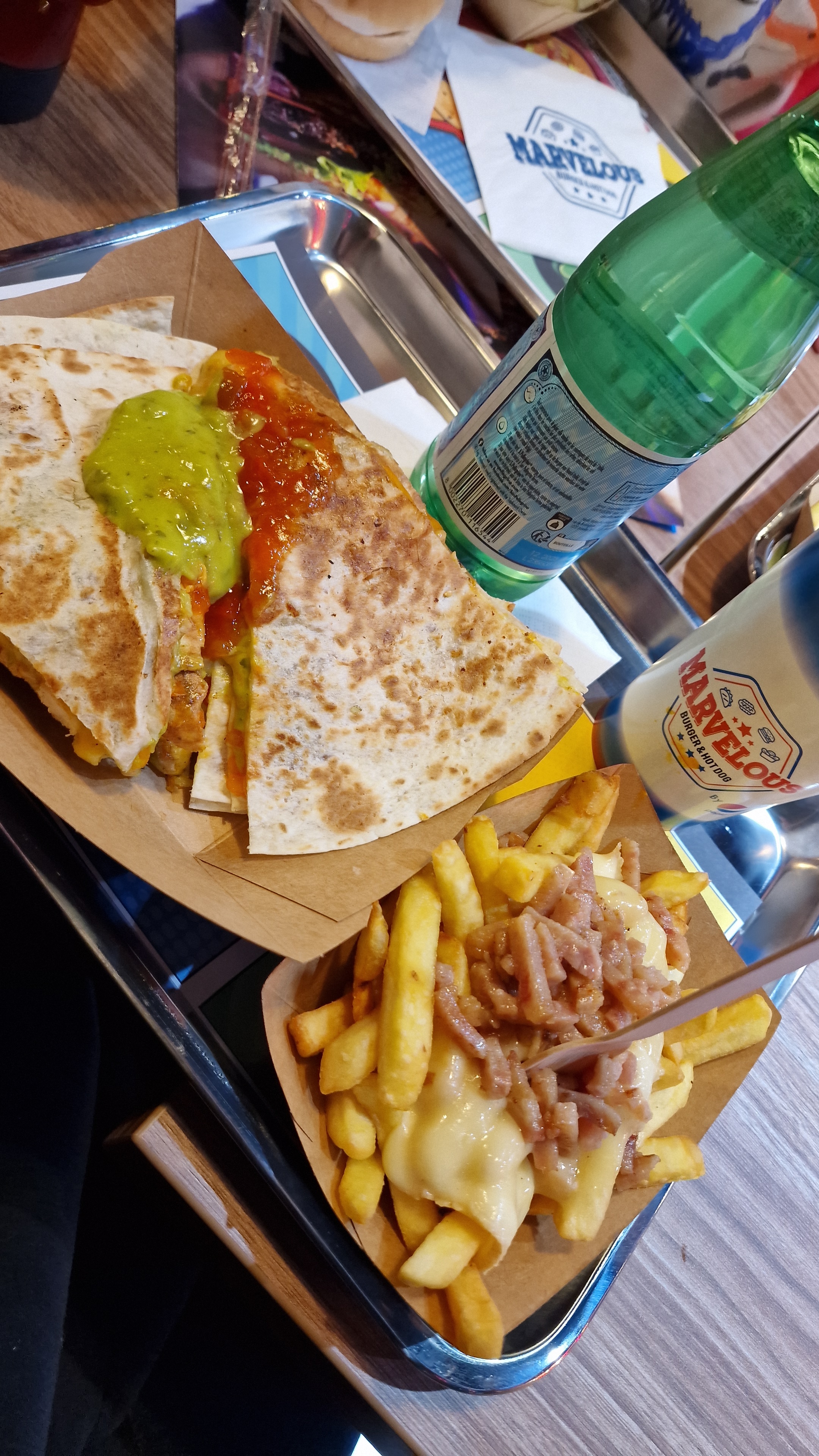 Bonjour, Commande passée ce soir, je vais aller droit au but, c'est fade, sans goût, que des produits industriels. J'ai commandé des quesadillas au bœuf, c'était sec, sans goût, la sauce salsa ainsi que le guacamole sont présent mais on ne sent rien, mélangé à un amas de viande haché, on mâche quelque chose de salé c'est tout , le fromage idem aucun goût. Il y avait une promo un acheté un offert d'une boîte de 10 nuggets. J'en ai reçu au moins 40.. je n'ai pas compris, si seulement ils étaient bon, l'intérieur on dirait du coton sans goût également. Il n'y avait que Le Pepsi qui avait le goût de pepsi mais le reste je cherche encore les saveurs mexicaines de la quesadillas , ou le goût de poulet des nuggets ... ah j'ai pris également un ptit hamburger qui ressemble à un cheeseburger, le steak sec bien évidemment une sauce ketchup de cantine et le steak , caoutchouteux , douteux , idem pas de goût . Première et dernière fois, je ne recommande absolument pas . Produit bas de gamme, sans goût , pas vraiment presentable et pourtant je suis amateurs de fast food mais là ce n'est juste pas bon je suis désolé.