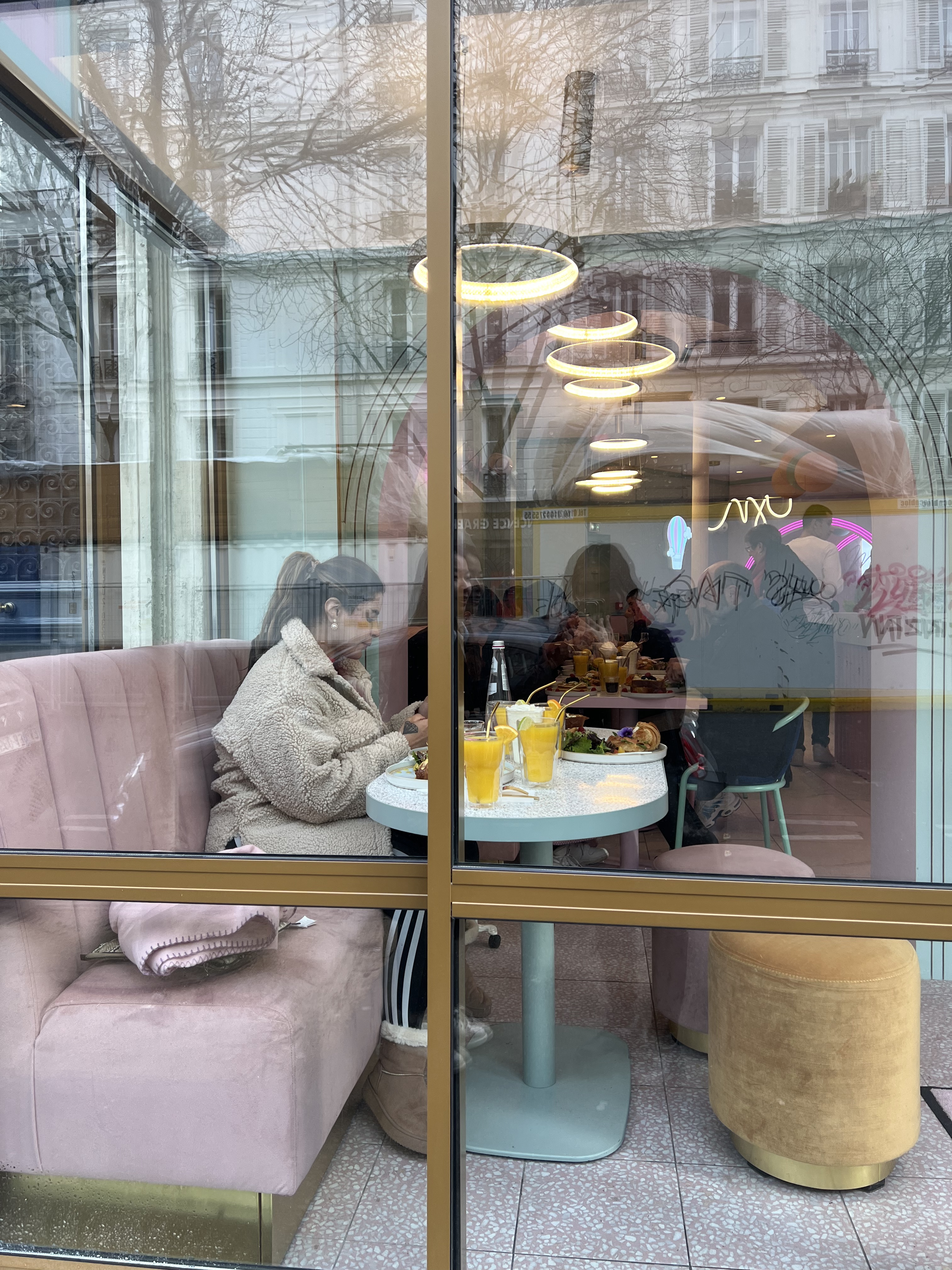 Très belle ambiance, nourriture bonne et design cozy. Les places à l'entrée ne sont pas les meilleurs, rien pour arrêter le soleil et le froid de l'entrée Sinon très bon brunch