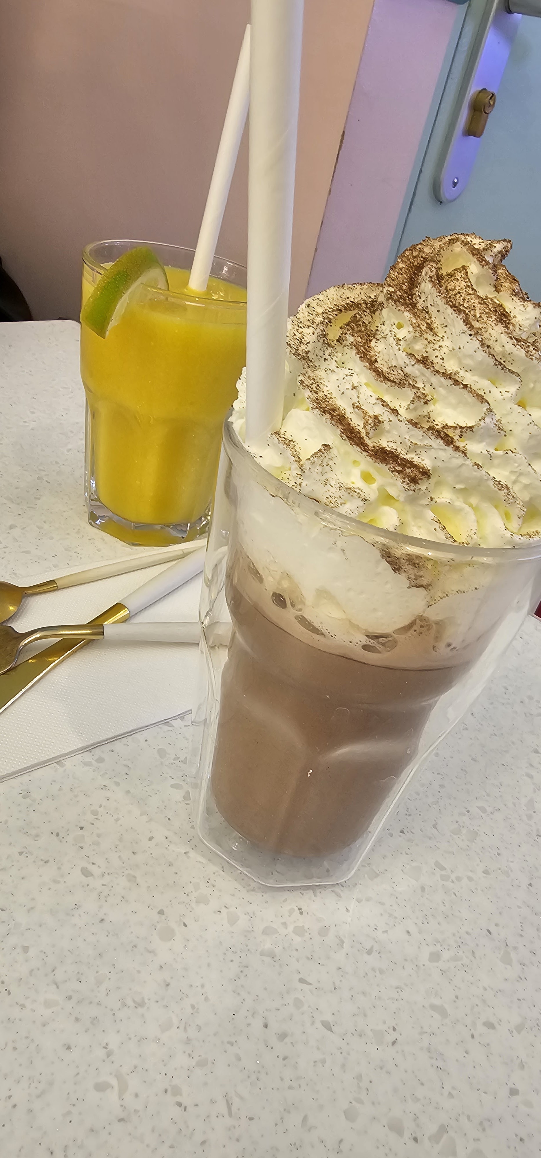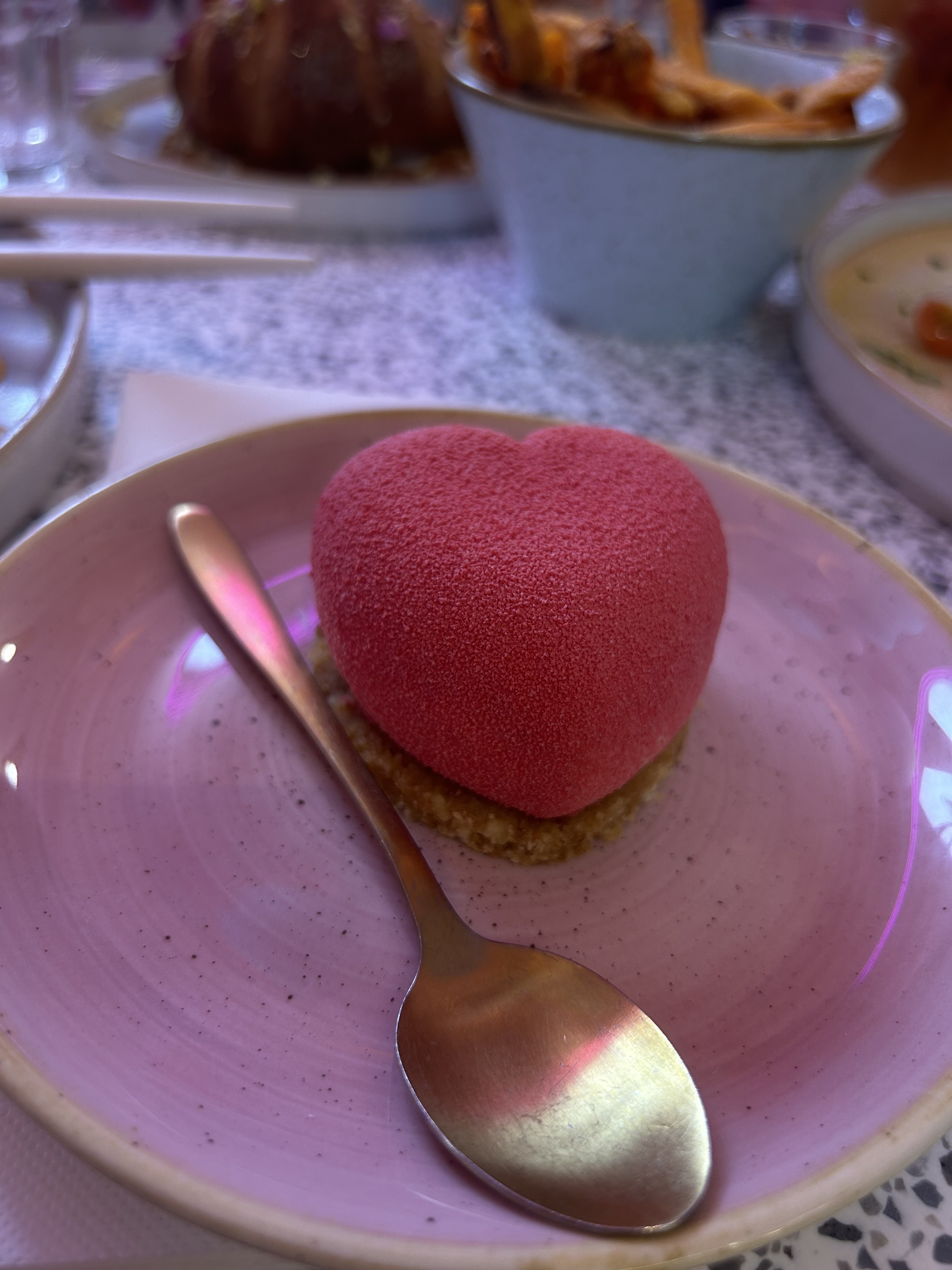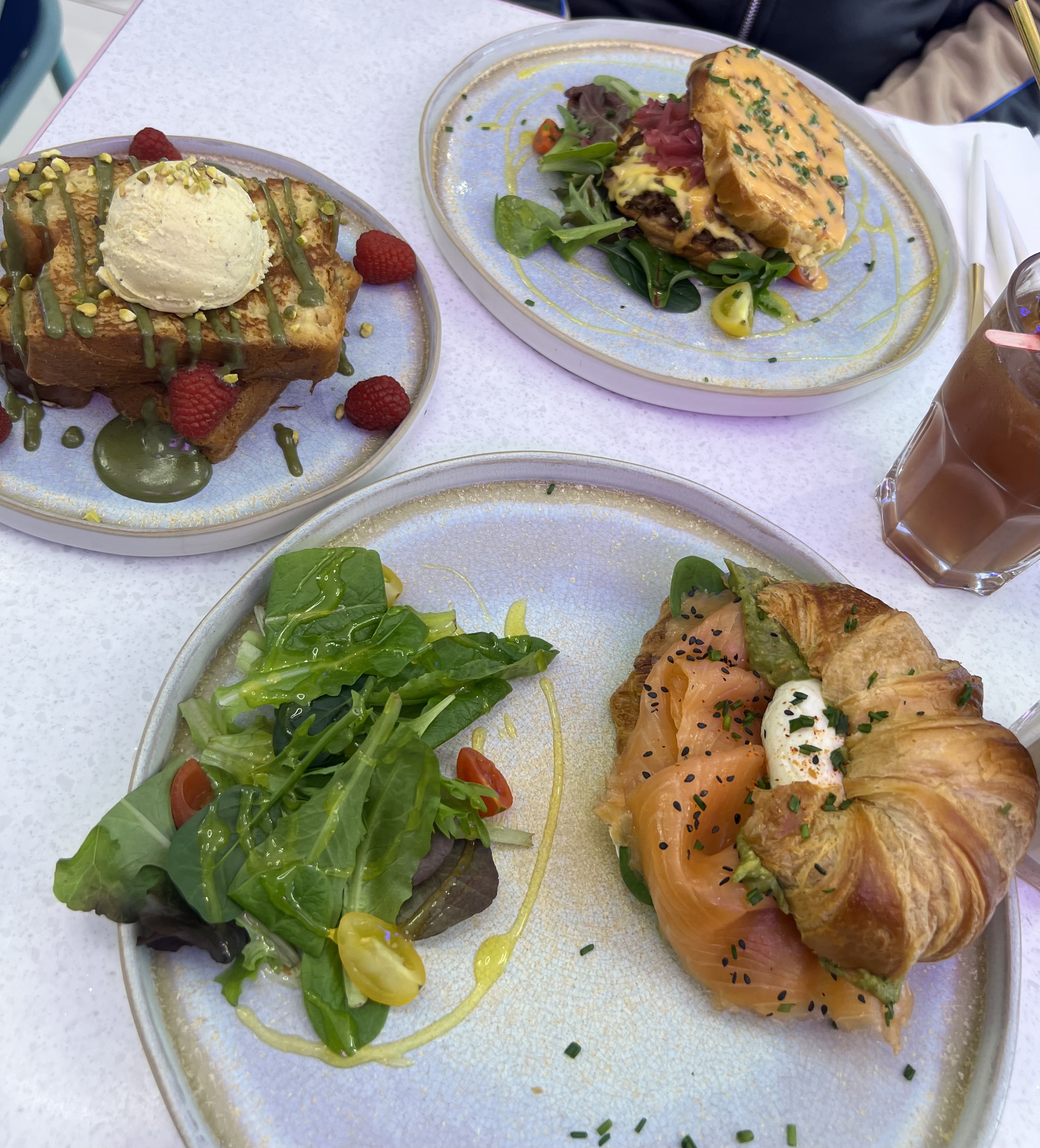 Brunch qualitatif dans un lieu féerique et rose bonbon - La déco comme sortie de l’imaginaire, rose et bleu pastel est juste à croquer ( les plats sortent d’un meuble) - La carte variée propose les essentiels d’un brunch + ils proposent des menus enfants et du halal - Le personnel plus qu’agréable, est au petit soin. J’ai été choqué par leur disponibilité et leur gentillesse - Les plats sont soignés et copieux, même les boissons sont canons - Petit bémol pour le matcha cookies: c’est un concentré de matcha. Buveuse de matcha au quotidien je n’ai rien sentie, seulement le sucre…. - Un brunch que je recommande !