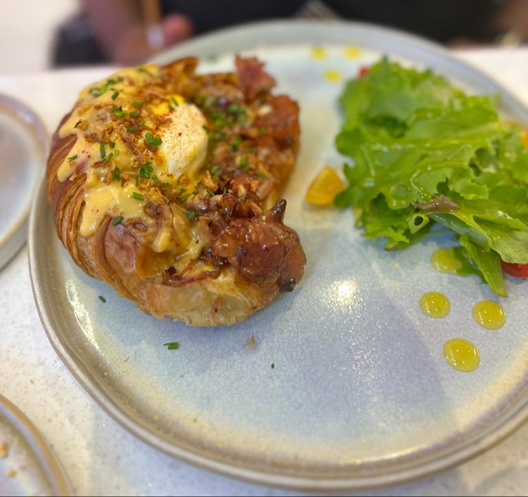 Je suis tombée sur ce lieu grâce a une vidéo Instagram qui sincèrement ne m’a pas plus donné envie que ça, une amie propose d’y aller et là c’est l’enchantement 😍 Nous y sommes allés un samedi, il y avait un peu d’attente mais rien de déraisonnable et surtout le charmant jeune homme qui était chargé d’installer les clients était très souriant et accueillant venait souvent nous tenir informés. Pour ce qui est de la nourriture c’est juste EXCELLENT !!! Les produits sont frais, les portions sont généreuses, ça a du goût c’était merveilleux !! L’équipe est très disponible malgré le monde. Mention spéciale au croissant bacon c’était quelque chose ! Le lieu est très beau, lumineux, des couleurs pastels par touche qui ne crèvent pas les yeux genre full rose ultra girly, on est loin de ça.