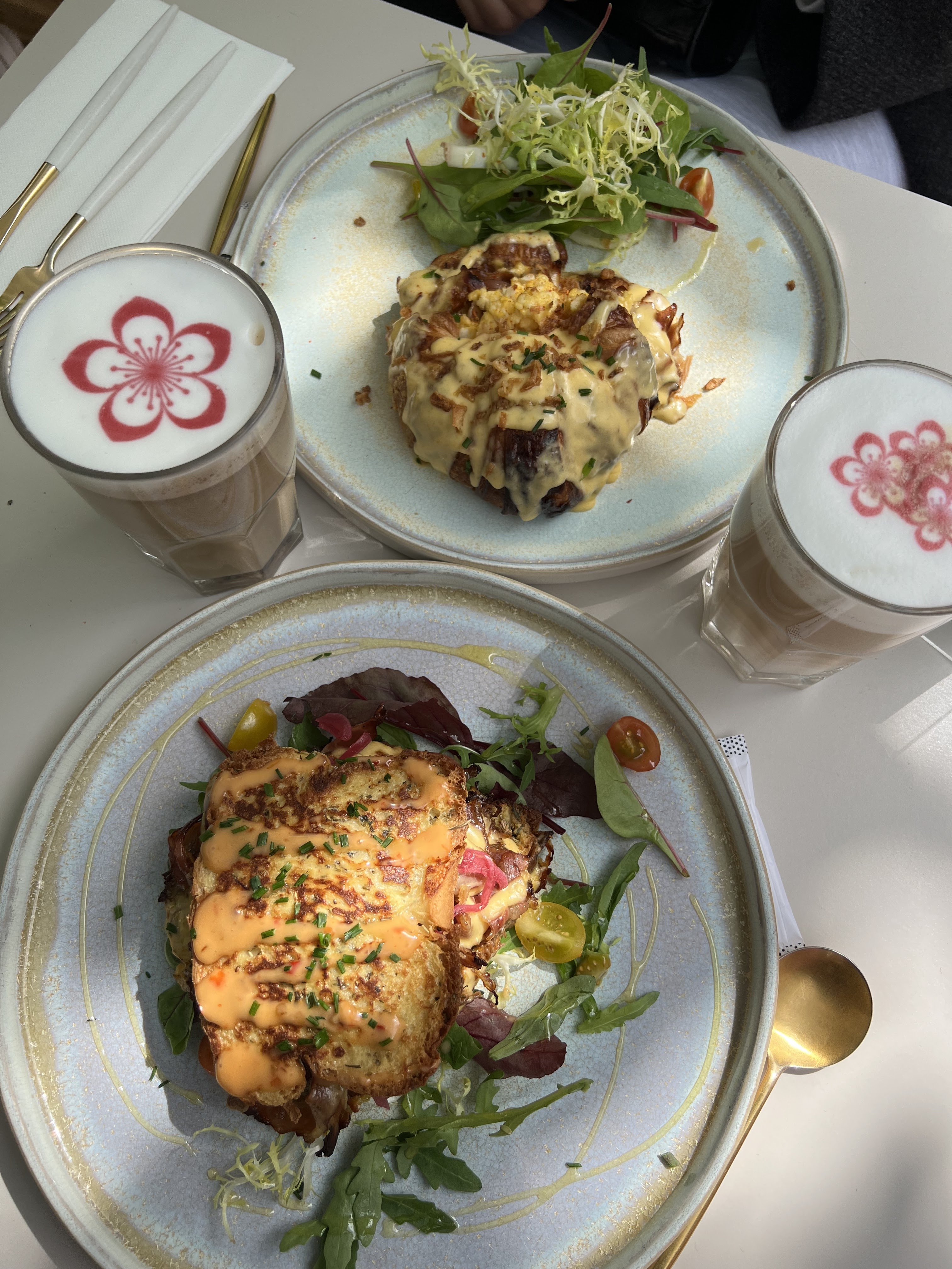 Super lieux + service + nourriture. Nous avons passé un chouette moment ! Mention spéciale pour avocado toast ( plus qu'un simple toast) et pour croissant bacon pareil un petit extra qui fait la différence. L'accueil est super ! Les serveuses d une sympathie sans nom ! Super moment