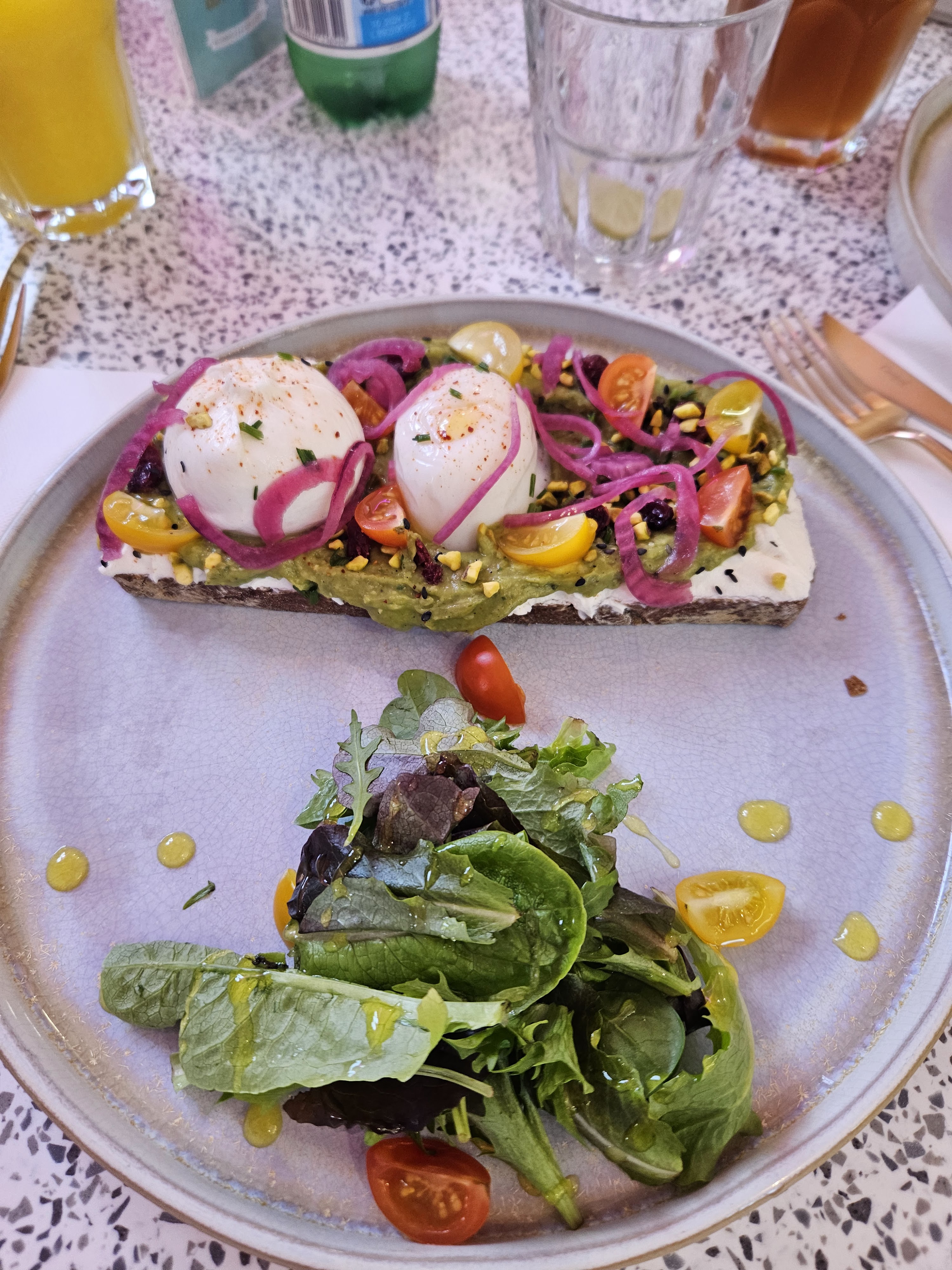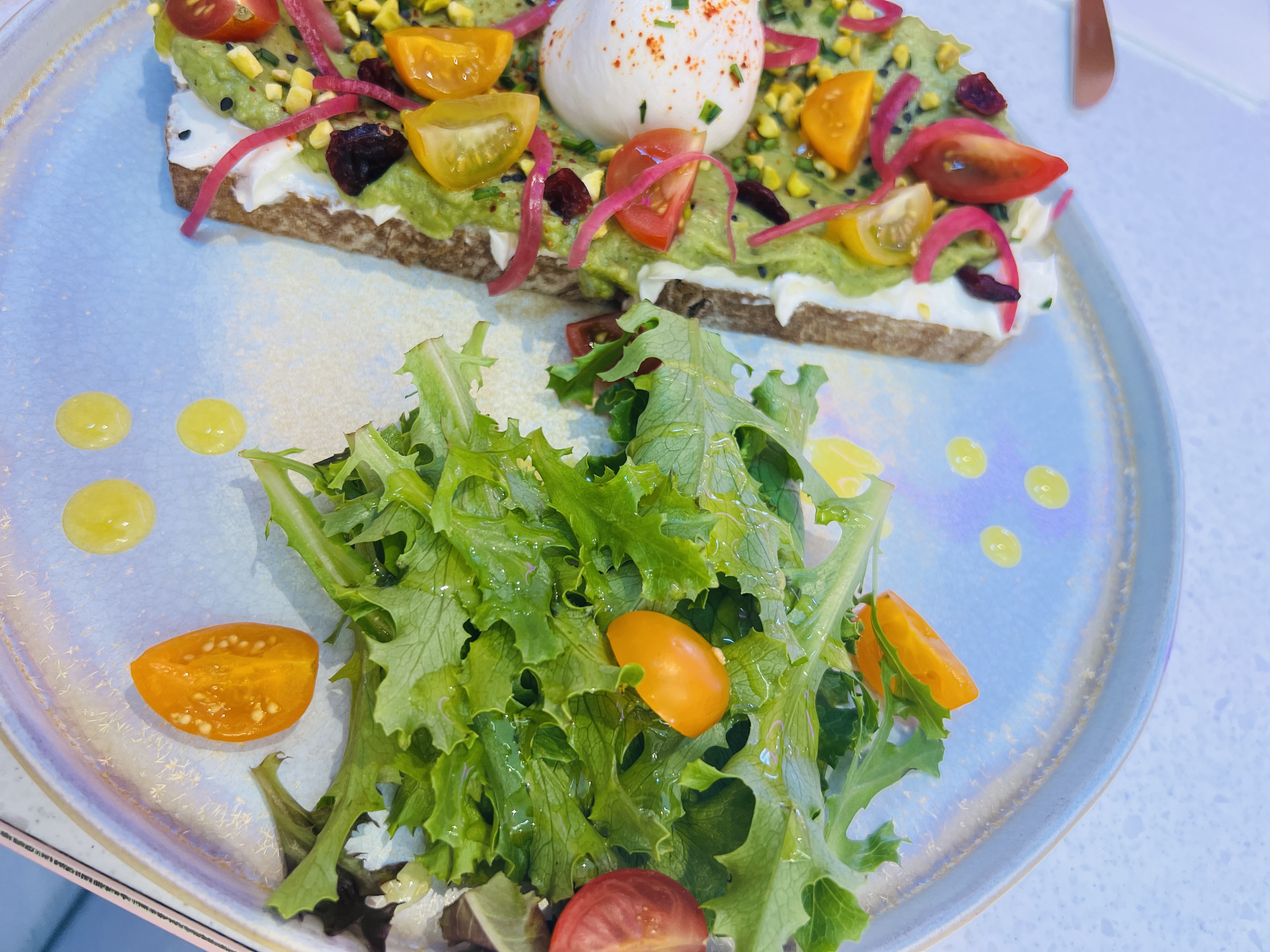 Cadre super cosy et confortable. Service excellent. Dans l’assiette c’est un pur délice, une explosion de saveurs en bouche. L’alliance des pistaches et du radis rouge mariné sur l’avo toast, c’est excellent ! Merci pour tout.