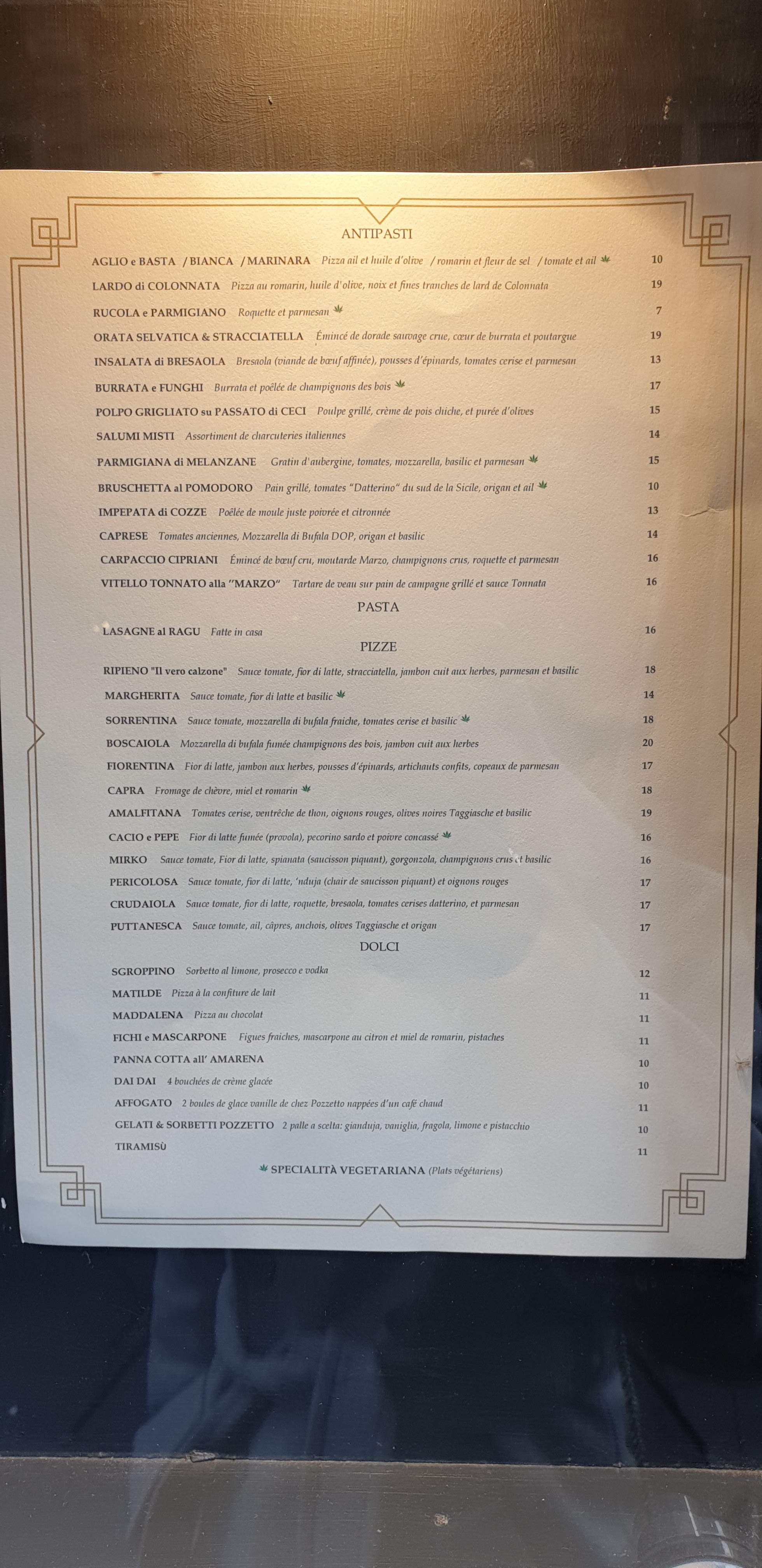 Restaurant incroyable, nourriture excellente et équipe exceptionnelle !! Je partage le menu. Mes préférés : L'Aglio e Basta, le Capra et le Tiramisu ! Je recommande vivement Marzo !!