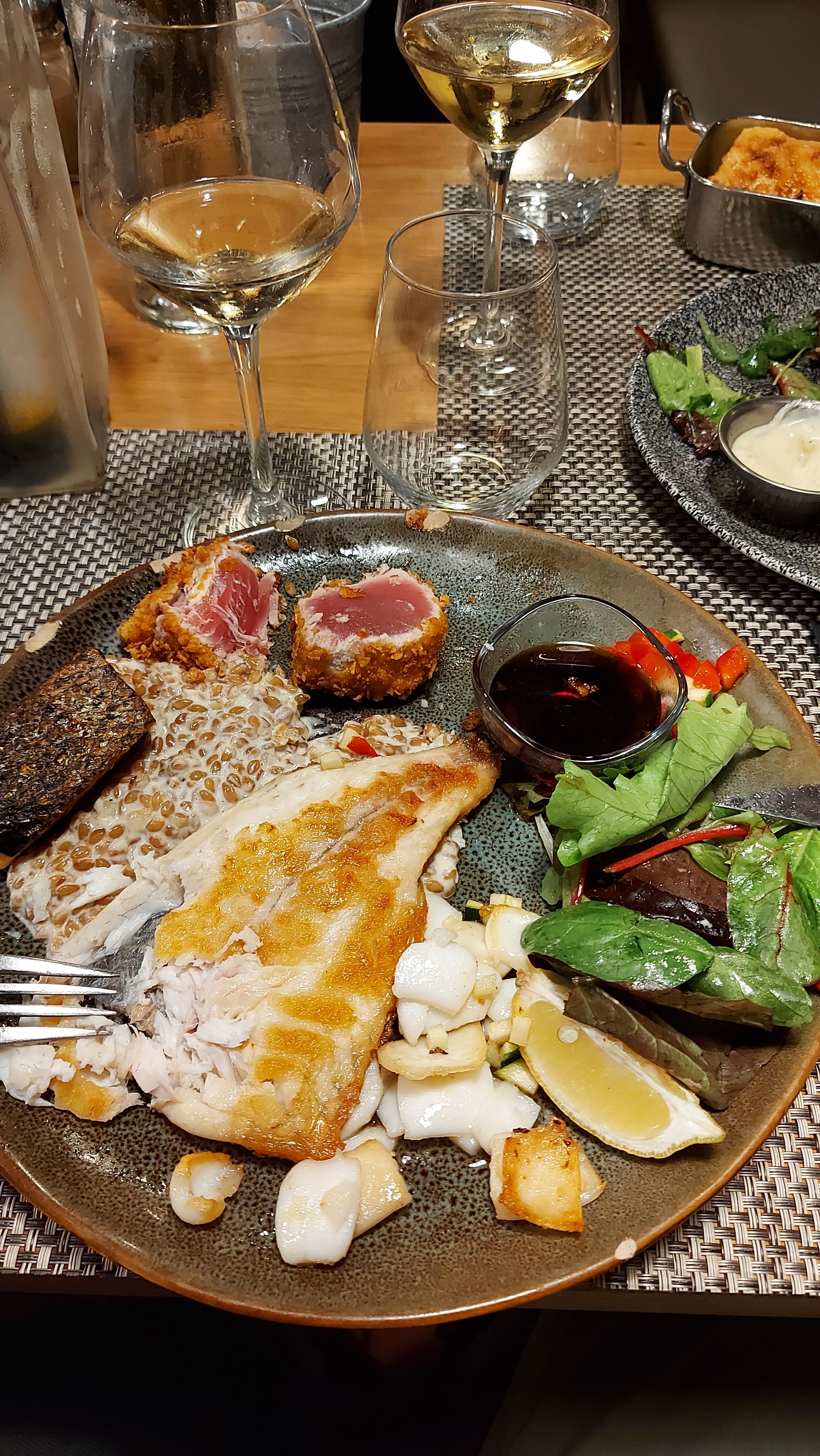 Très bon resto, surtout si vous aimez le poisson !!! Couteaux a la plancha en entrée suivi du tataki de saumon au sésame sauce sucré soja hmmm😋😋😋😋 un régal, dessert qui casse tout et qui régale vos papilles, c'est un dessert simple mais il est parfait (a mon goût bien sûr) c'est le pain perdu mais avec de la brioche !! Un conseil..... ? craquez !!! Et le vin, du rouge bien sûr, opté pour le Cabardès !!!
