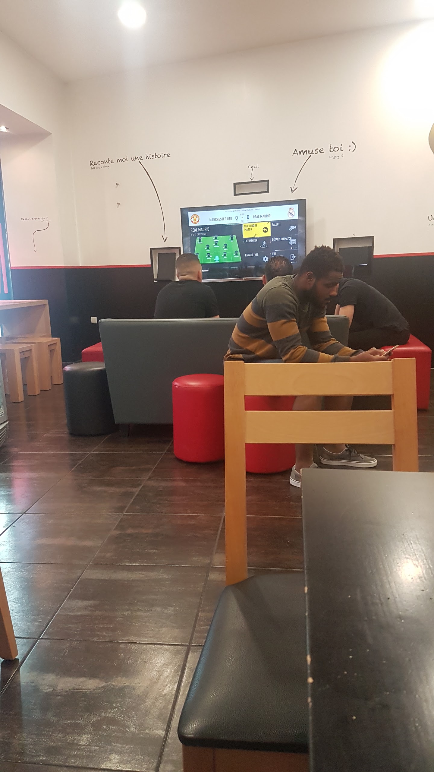 Endroit sympa Par contre Niveau tacos c’est une catastrophe c’est le pur tacos que j’ai mangé de ma vie. L’endroit est beau mais les gens viennent pas pour le confort seulement ; ils viennent pour manger de la qualité également. Pour ceux qui veulent jouer à la play vous pouvez y aller mais si c’est pour manger (tacos) passer votre chemin . « Mieux vaut transformer cet endroit à un espace de jeux »