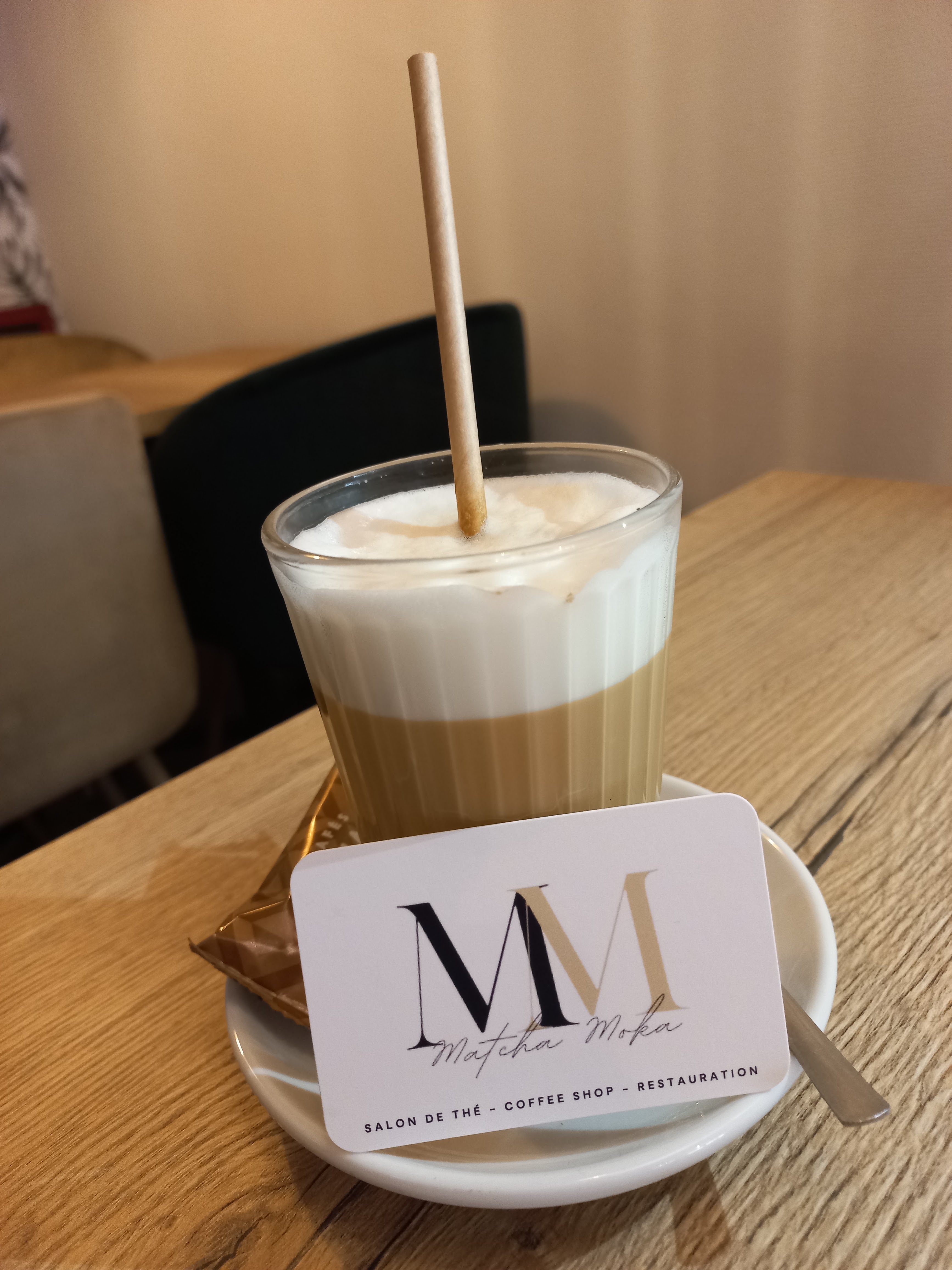 Je suis venue au matcha moka récupérer une commande culinaire et j'en ai profité pour demander si elle faisait les cafés à emporter et sa réponse fut positive. J'ai pris deux latte macchiato à emporter un caramel et noisette pour mon mari. Nous nous sommes régalés. Nous étions déjà venus pour un café et un chocolat chaud qui étaient excellents également. Nous y sommes retournés quelques jours après pour déguster les latte macchiato sur place et nous avons pris des photos tellement c'est aussi beau que bon. On viendra plus souvent déguster désormais de très très bons cafés et latte et thés en famille à cette adresse. Un grand merci pour ce voyage.