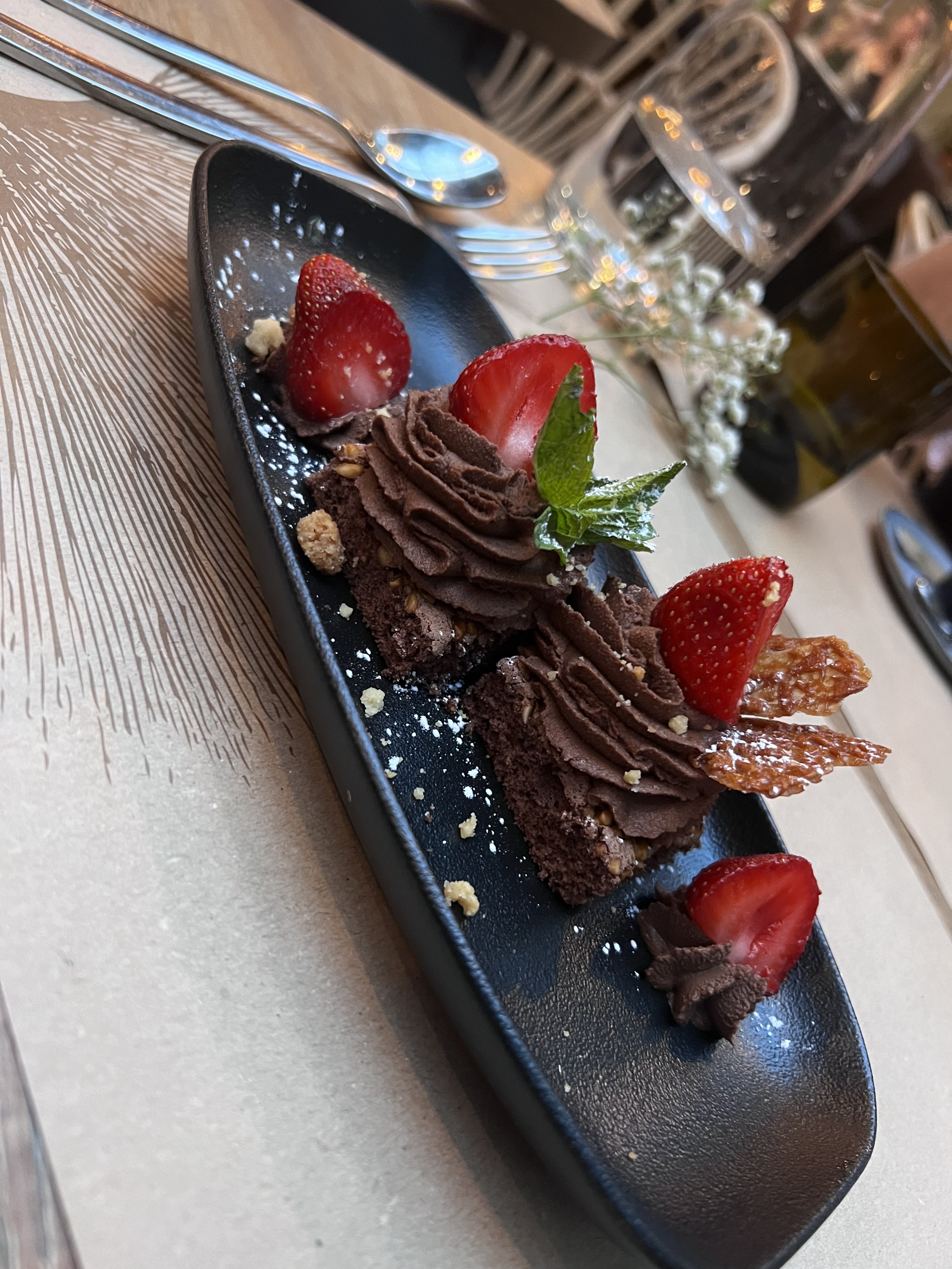 Cadre en terrasse idéal, serveuses souriantes et accueil au top MAIS service expéditif qui a un peu gâché notre dîner où l'apéro plat dessert s'est enchaîné sans pause pour profiter de ce moment. Juste cette partie à revoir pour ne pas se sentir pressé pour libérer la place et ca sera optimal