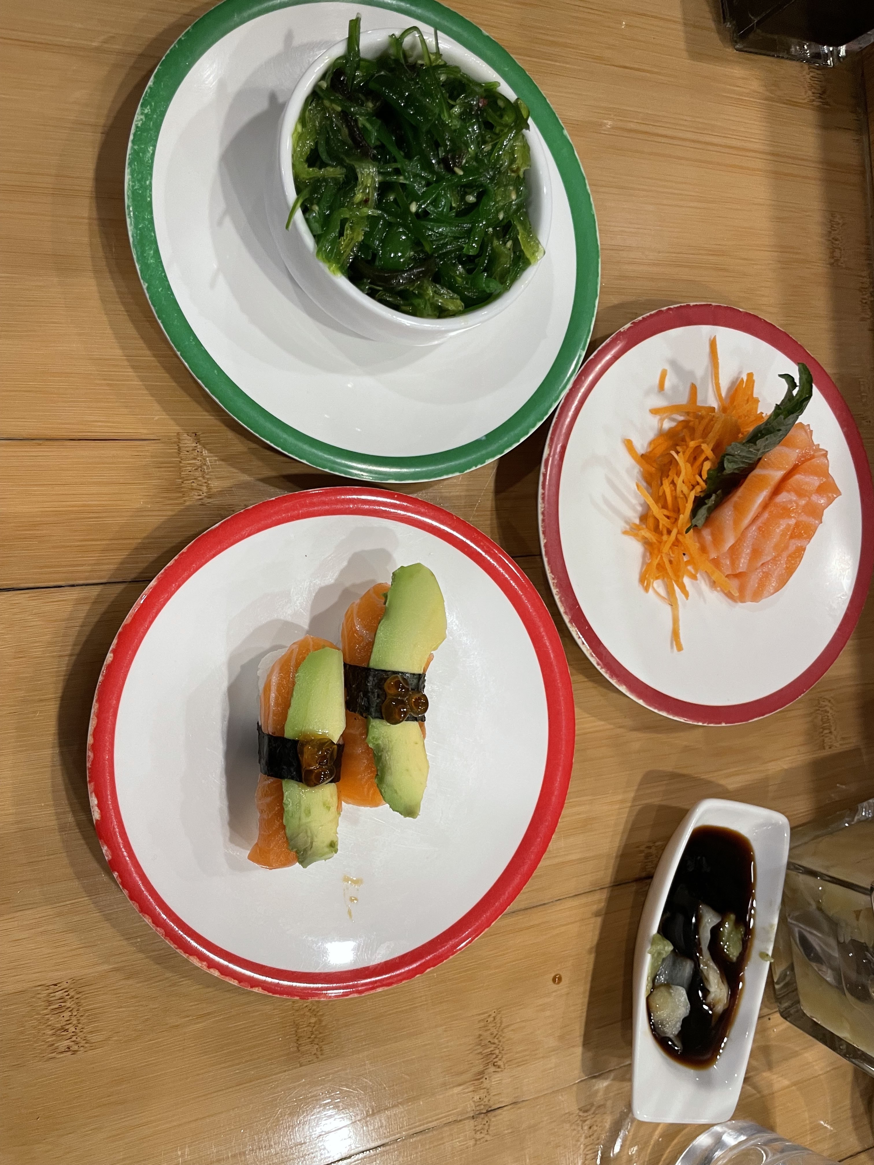 Il n y a plus rien dans les assiettes . Les portions de sushis et sashimis sont à la limite du microscopique . Dommage