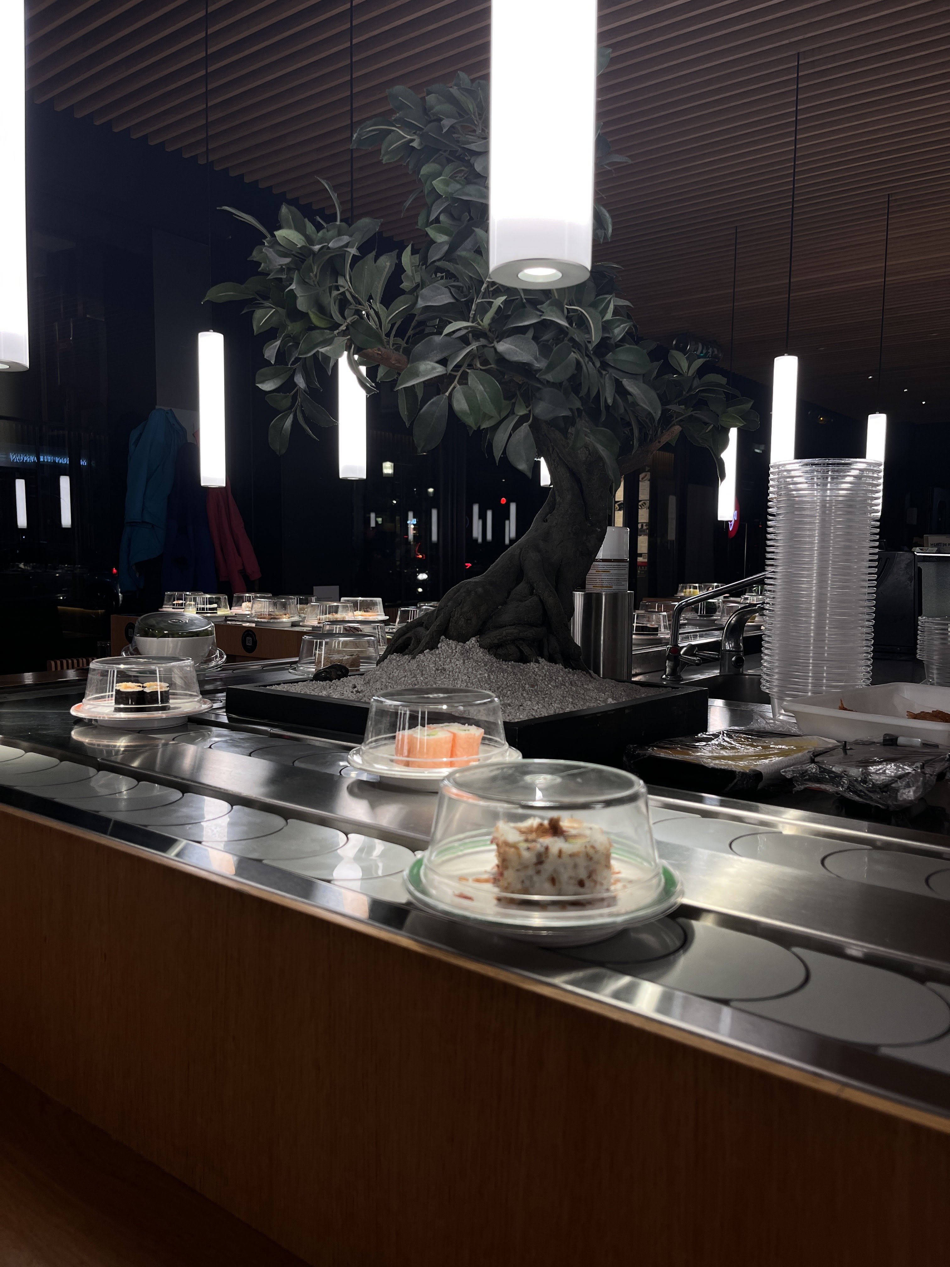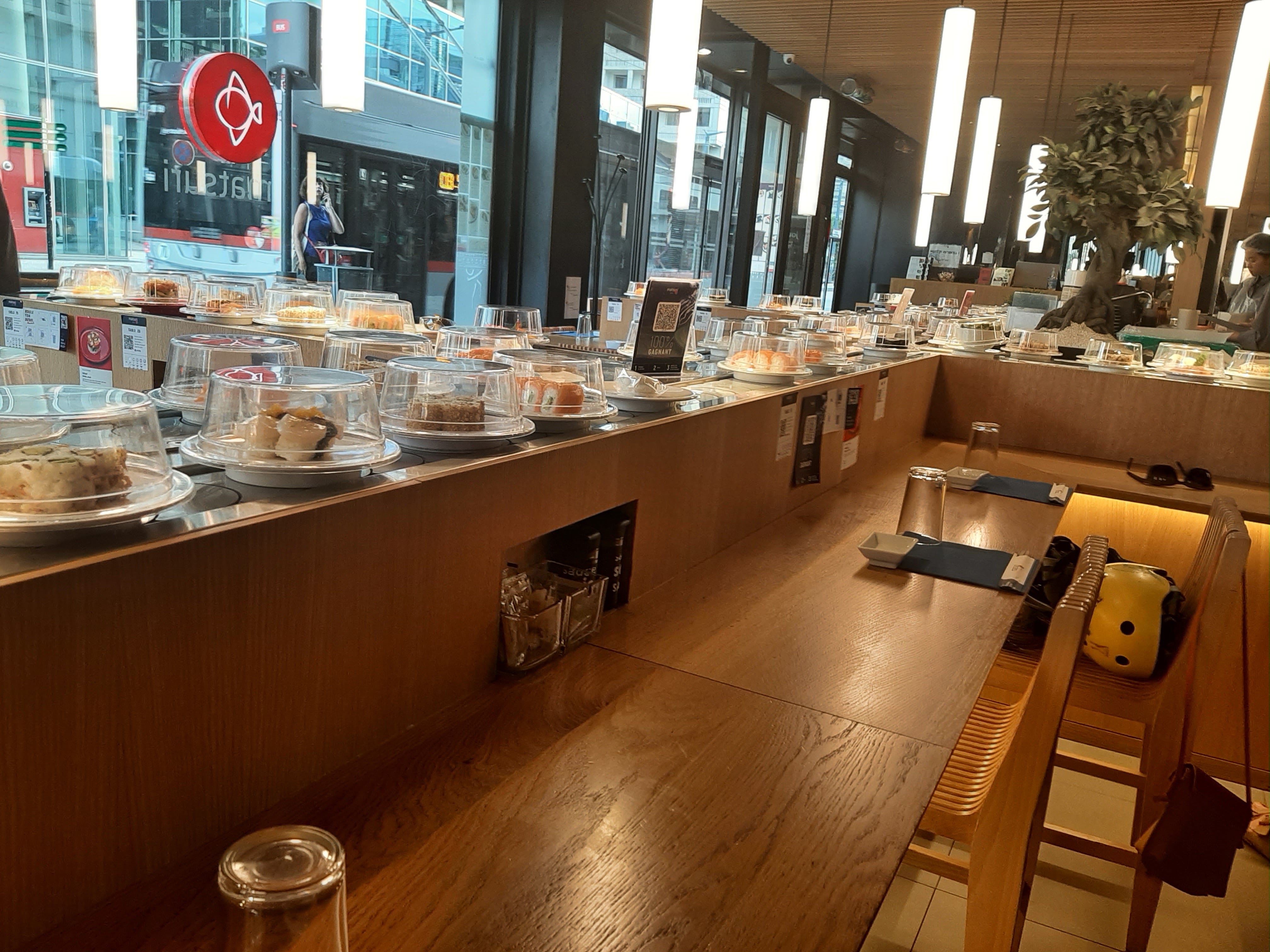 Le concept est sympa mais ce sont toujours les mêmes plats qui tournent. On peut commander ce qui manque mais du coup, ça perd l'intérêt du tapis roulant. C'est bon mais je n'ai pas été enthousiasmé.
