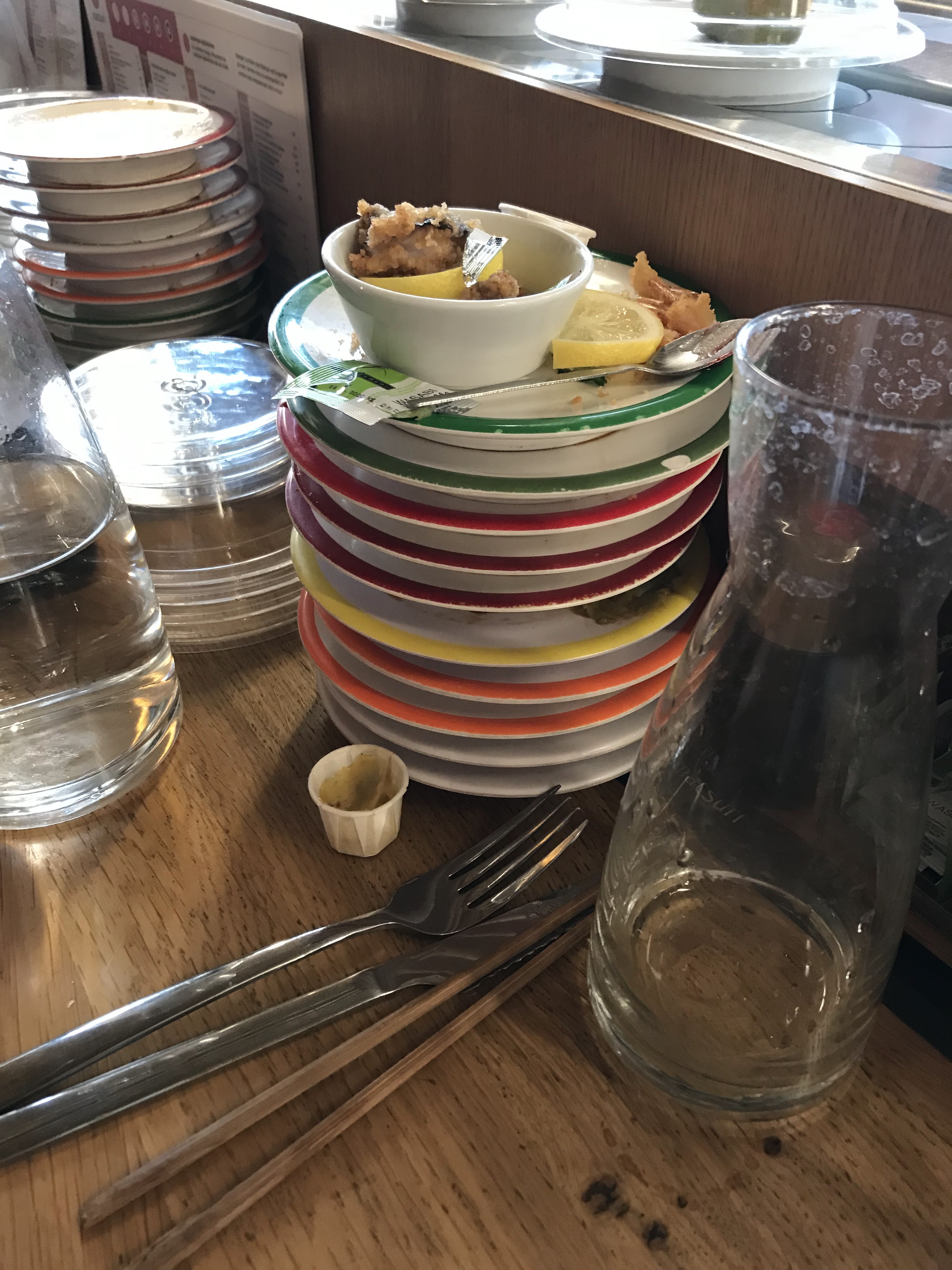 Première fois dans un restaurant proposant ce concept d'assiettes tournantes et vraiment ravie.Facturation à l'assiette donc pratique en groupe, chacun paye ce qu'il mange. De plus avec une réservation La fourchette 30% de réduction non négligeable. Poisson frais et trés bon, ne pas hésiter à commander si les plats voulus ne sont pas sur le tapis! Personnel et locaux agréables.