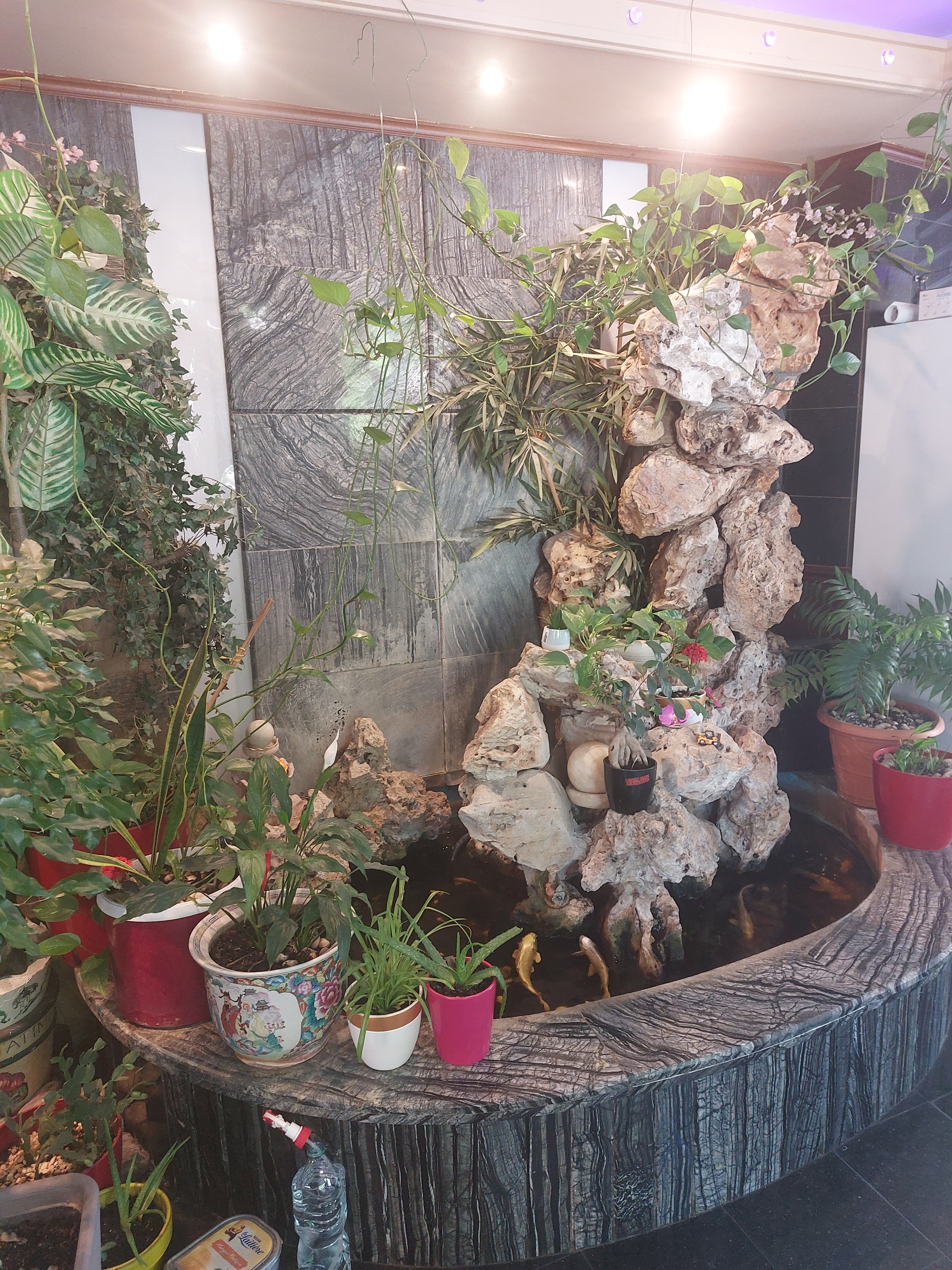 La déco t'emmène au japon. Jolie fontaines avec des poissons, les enfants aiment. Accueil super, les propriétaires sont très agréables. On mange bien et à des prix correctes. Il faudrait faire attention à la rampe d'escalier qui a des gros vides et donc des enfants pourraient y passer à l'intérieur et tomber. Dommage que maintenant ils soient fermées le lundi et mardi à midi.