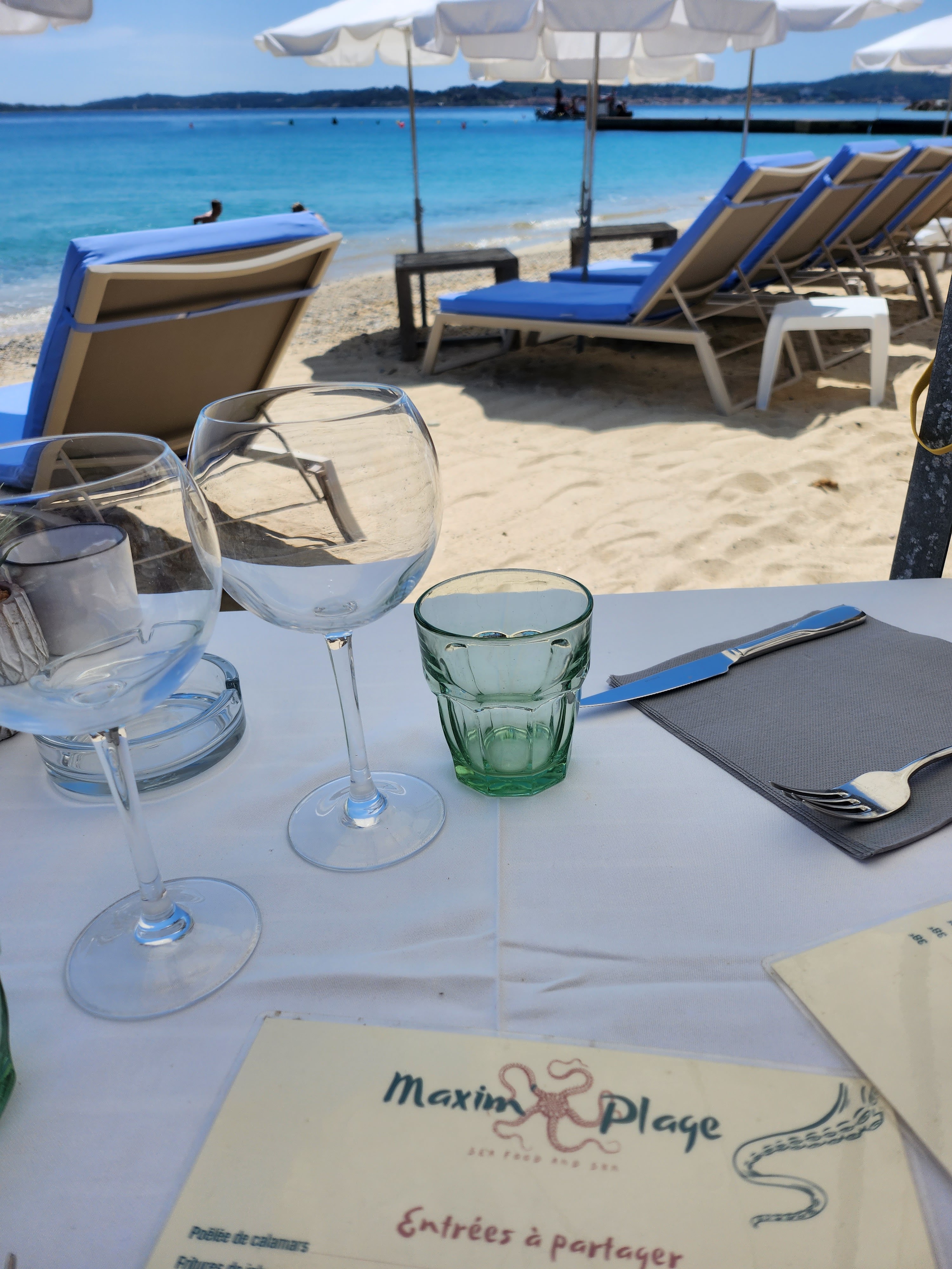 Un joli coin de paradis à Saint Maxime, magnifique vue, les pieds dans le sable, de bons plats, certes le prix élevé mais bon le temps d’une soirée. Un petit plaisir