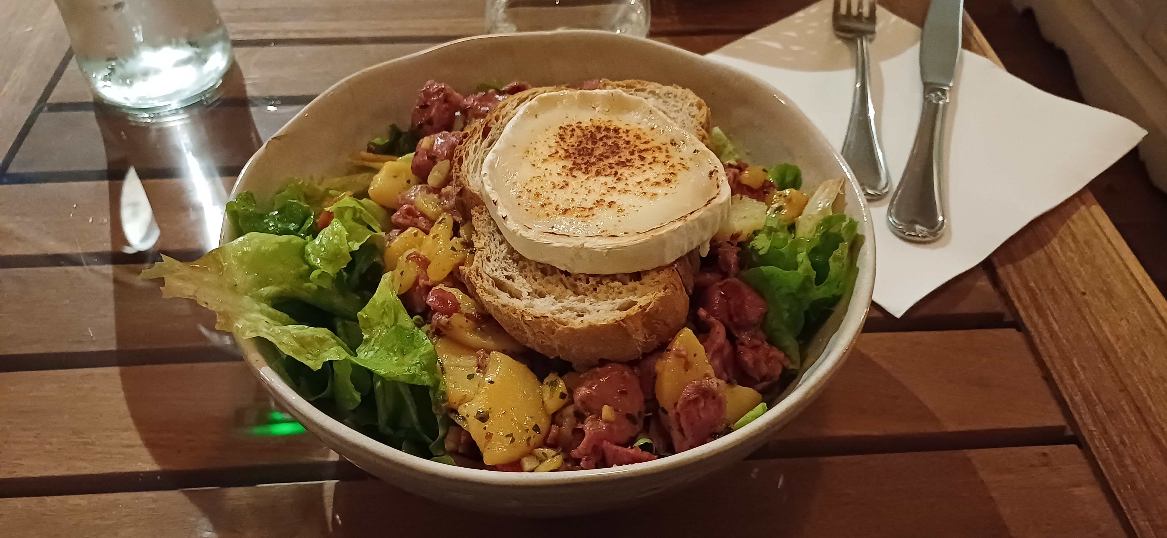 Pris une salade composée. Rien à redire, copieuse, généreuse, gourmande Le service agréable, et le prix plus que raisonnable. Je recommande