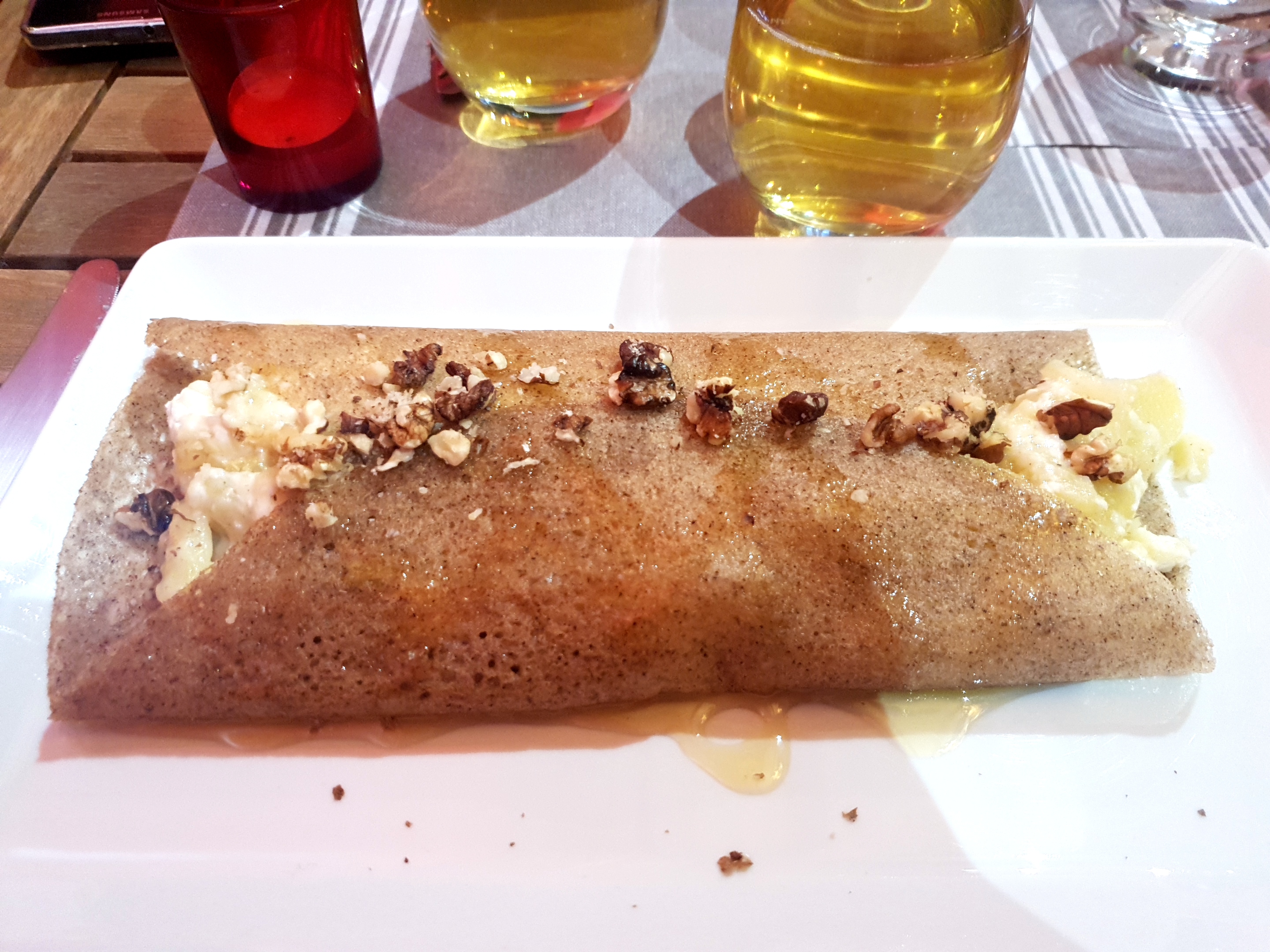 Crêpes complètes décevantes et bourratives. Je note néanmoins positivement le cidre bio (pas donné à près de 10€ la bouteille) et la salade achetée avec supplément.
