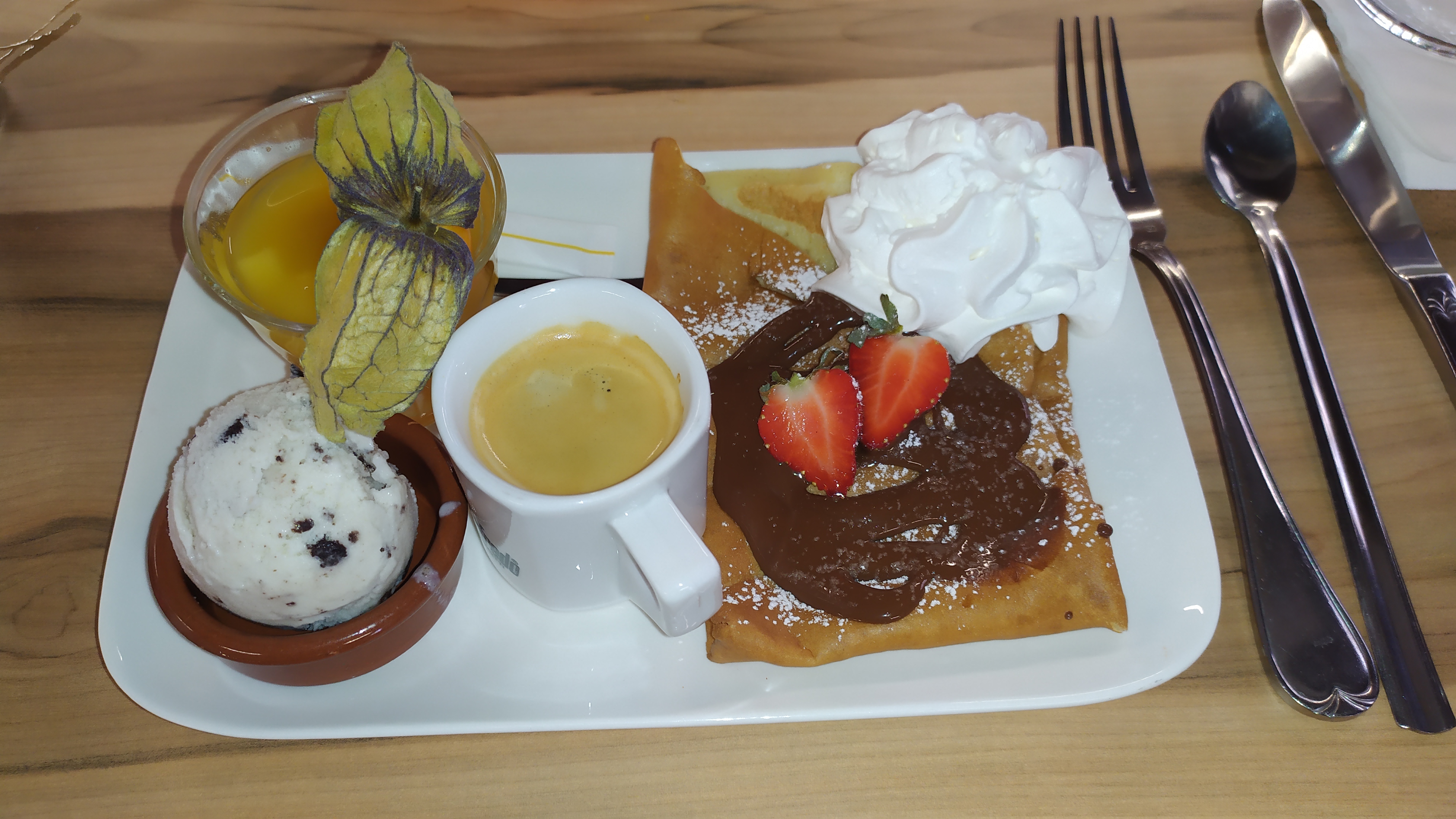 Dîner en terrasse un samedi ensoleillé. Très bon accueil repas rien à redire crêpes belle présentation et très bonne. Dessert glacé au top et la Chantilly maison offerte !!!