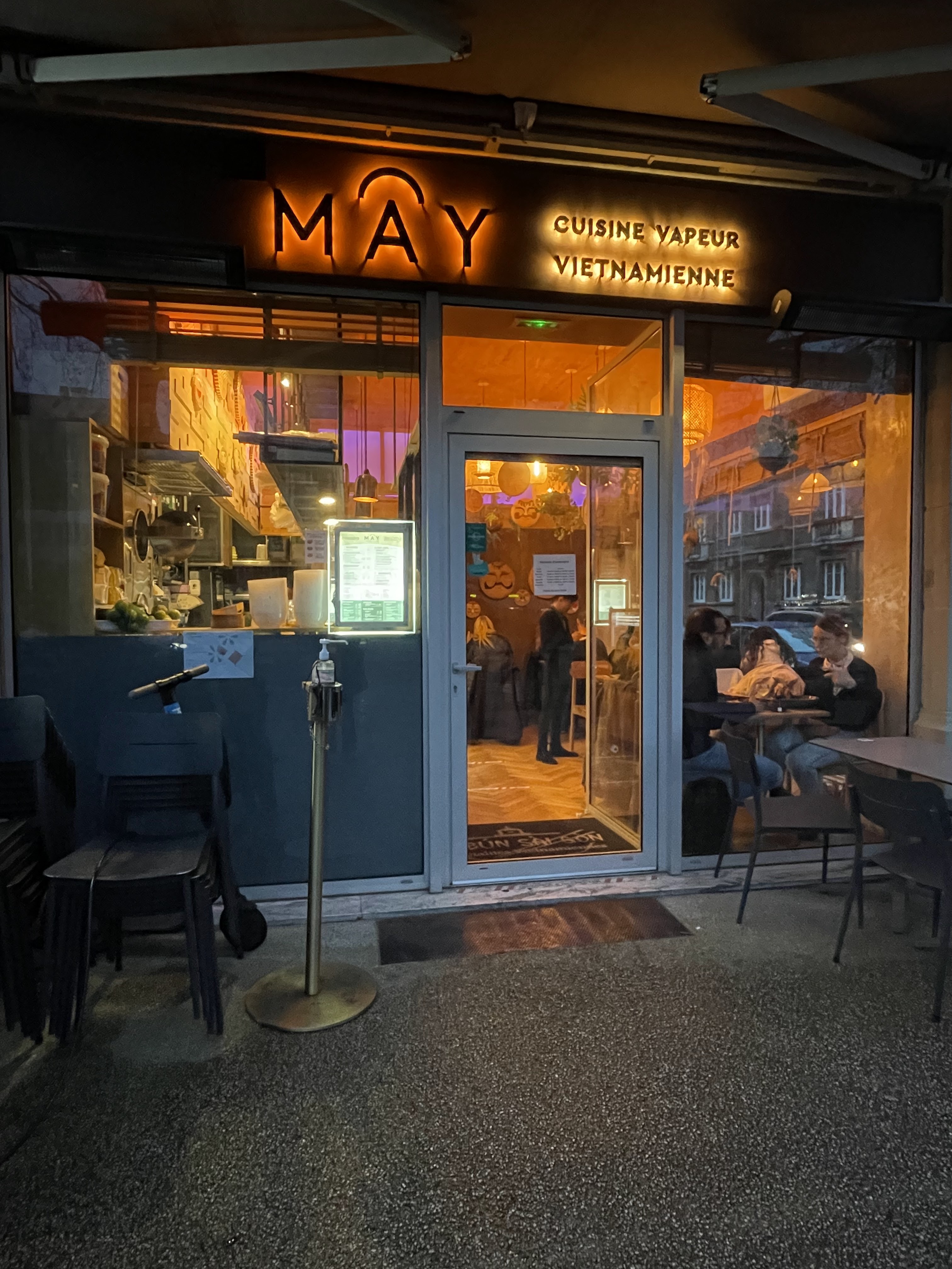Très concluant pour un premier essai. Le cadre intérieur est dépaysant. Le service souriant et à l'écoute. J'ai commandé des nouilles + poulet et je peux dire qu'il était plutôt réussi. Les nouilles sont normalement sautées dans le wok avec plein d'huile, sauf que chez Mây, elles sont cuites à la vapeur, ce qui rend ce plat beaucoup plus équilibré! la sauce est également bien ajustée (soja), une pointe de coriandre s'ajoute à ce festival de goût. (Si vous raffolez de cet aromatique, n'hésitez pas à demander à la chef, elle se fera un plaisir de vous mettre un supplément). Je recommande donc ce petit restaurant sans prétention et qui mérite tout mon respect culinaire! A vos baguettes! Prêt? Mangez.