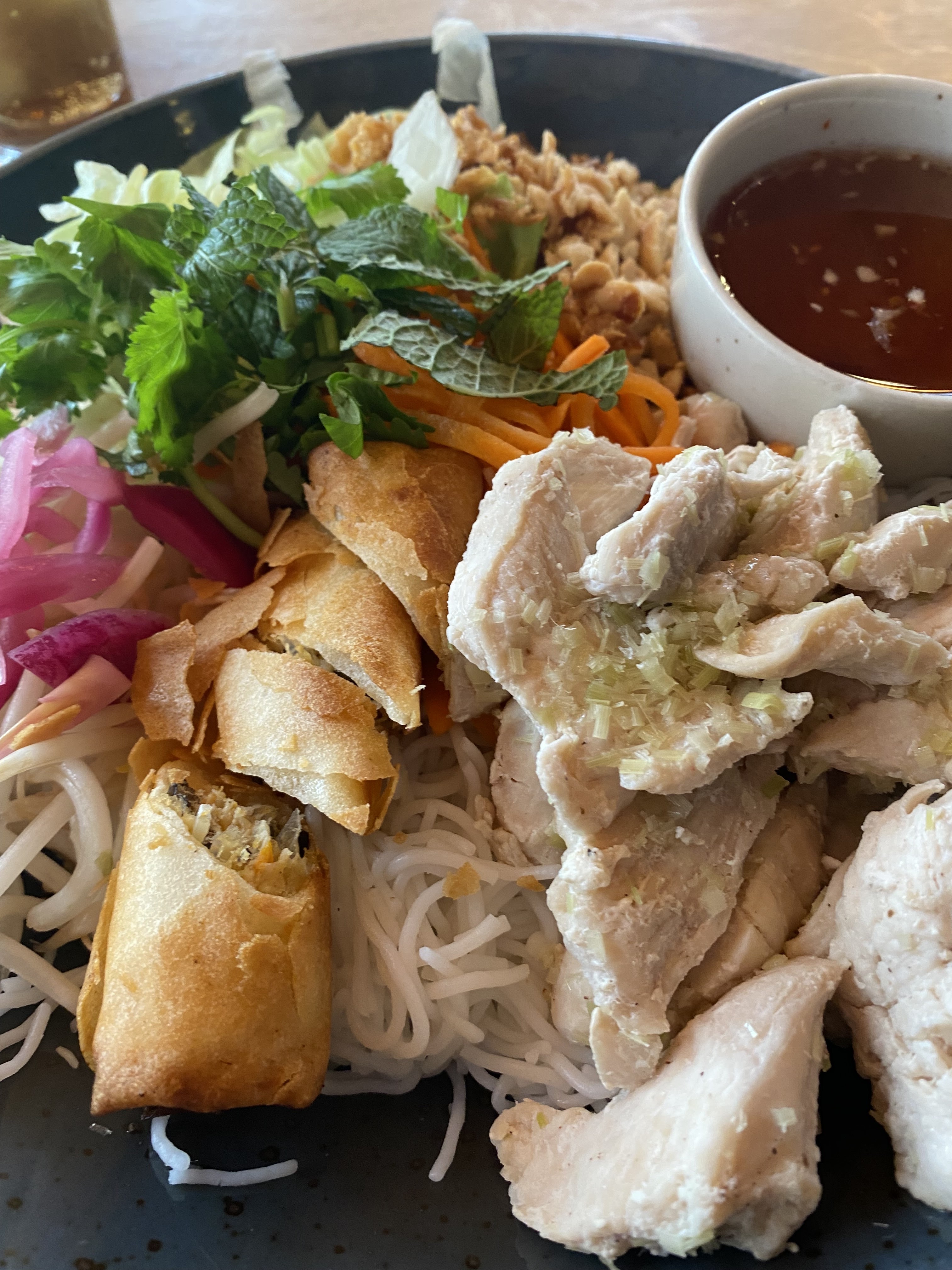 Vraiment top. Je viens d'une famille asiatique. J'ai l'habitude de manger au pays (Cambodge Thaïlande) Souvent réticent à manger dans les restaurants asiatiques. Je me suis laissé tenté lors d'un repas à midi. Et je suis agréablement surpris, car c'est bon. Aucun loupé, sur le vermicelle, le poulet, les crevettes, la sauce. Je ne suis pas Fan de leurs nems. Mais c'est bien mieux que dans les restaurants qui vous font frire des nems congelés ! Petit plus, les bols en plastiques sont réutilisables ! Donc les propriétaires lisent les avis et écoutent leurs clients ! Je reviendrais :)