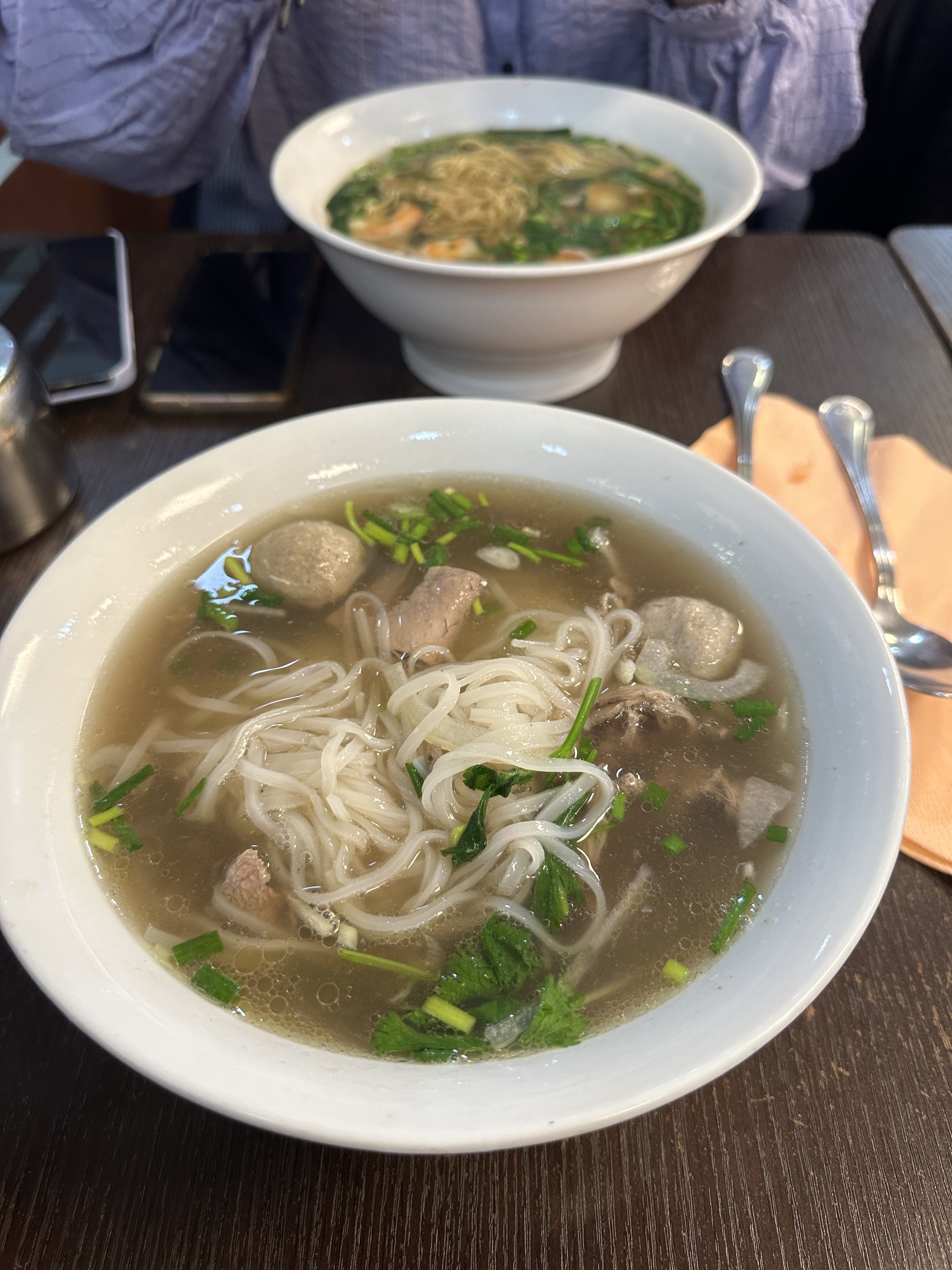 Les nouilles sont moelleuses et abondantes. J'ai apprécié à la fois le pho mélangé et le pho au bouillon de bœuf.