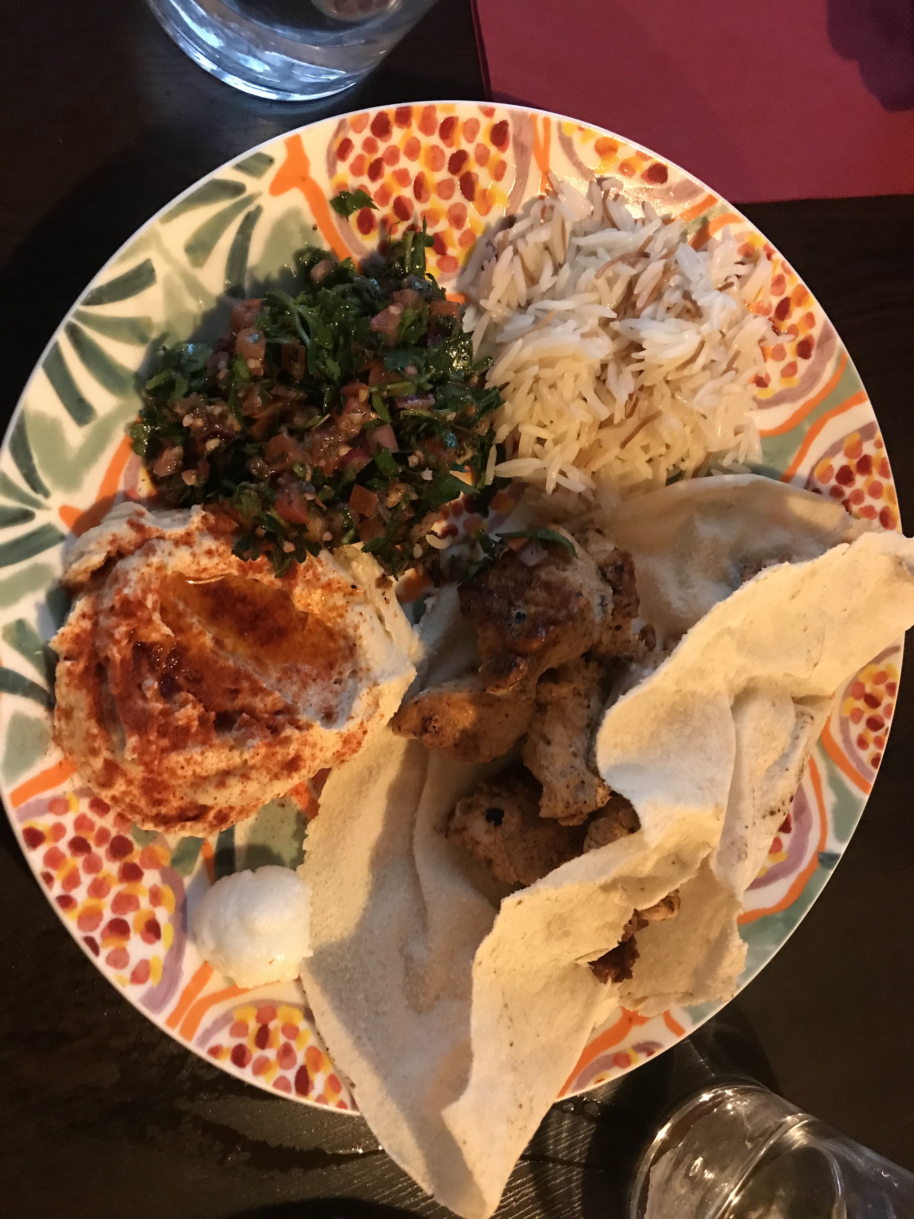 Nous avons goûté une assiette gourmande, les brochettes tawouk et celles d'agneau. Tout était bon, seule l'acidité de certaines préparations m'a déplu. Les tarifs me paraissent élevés mais il semble y avoir un travail de qualité derrière. Très bien pour se faire plaisir de temps en temps.
