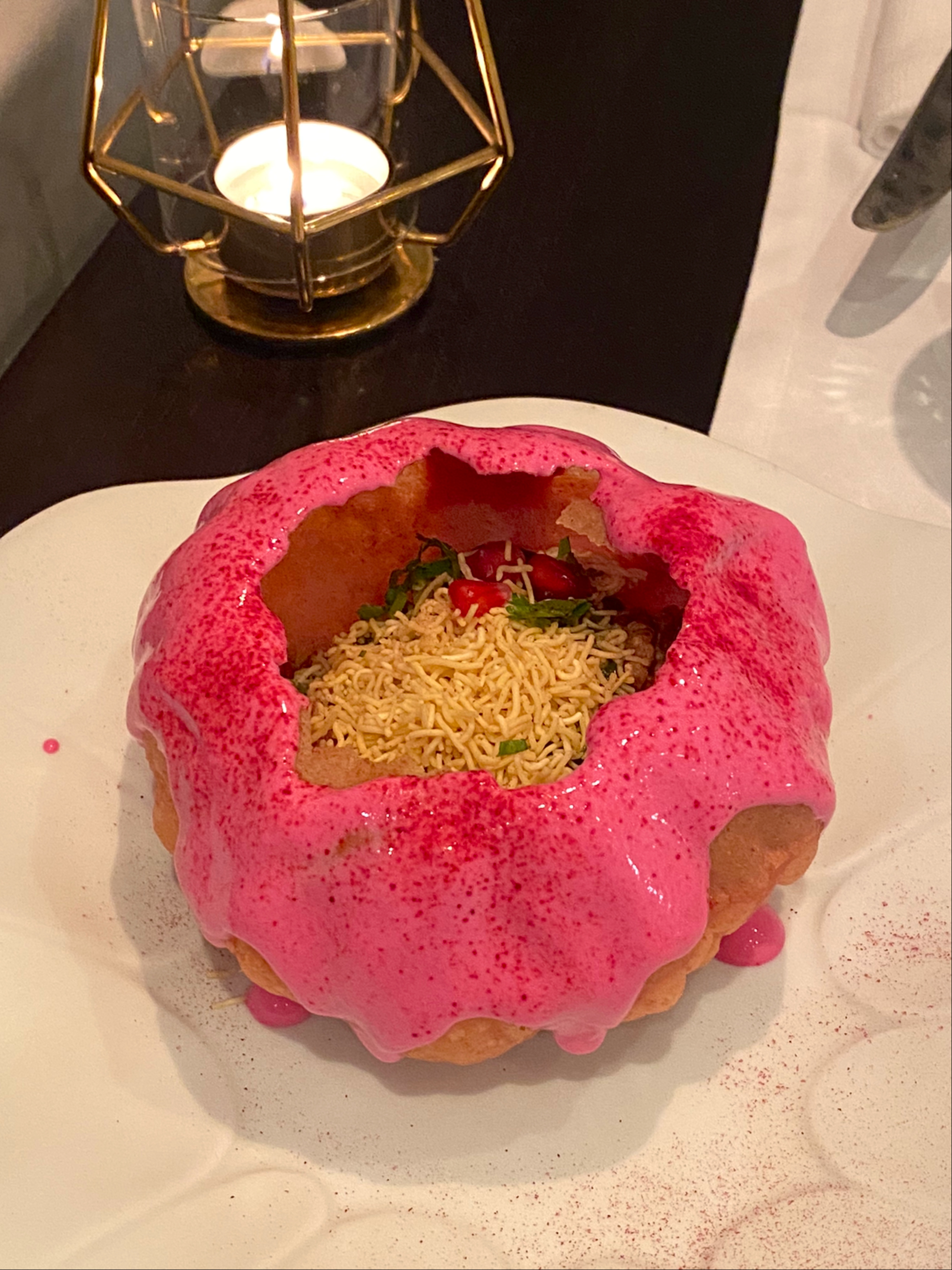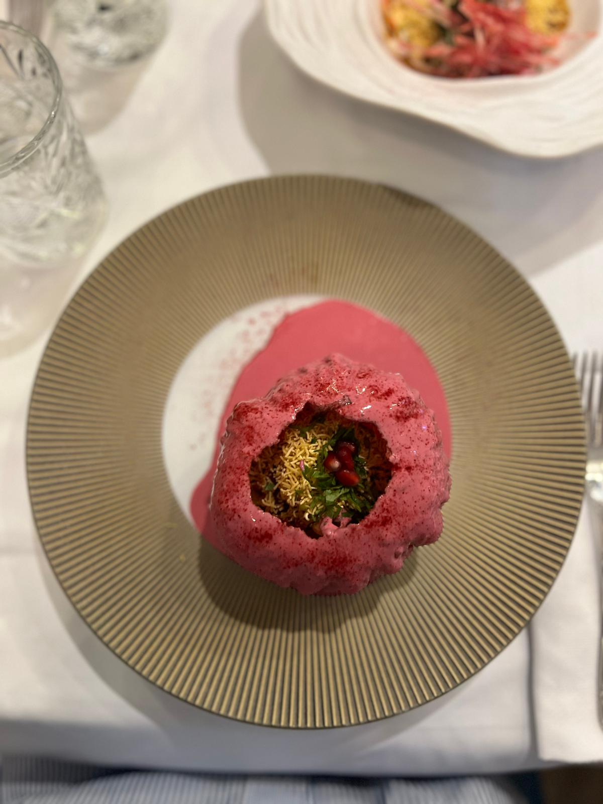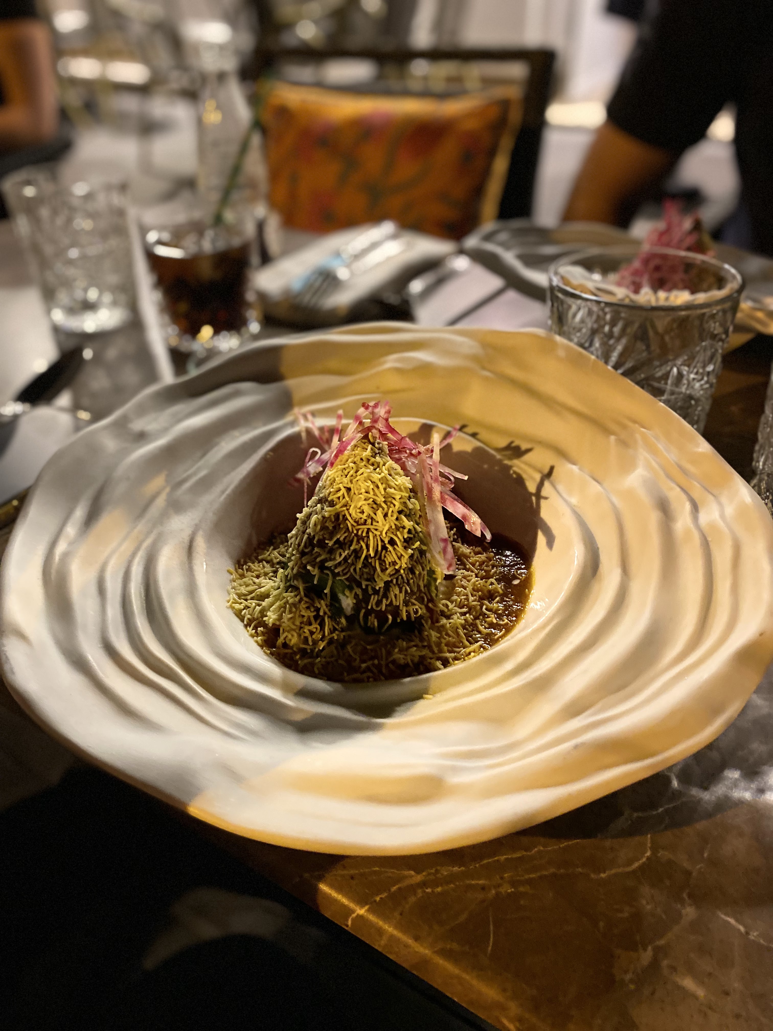 Cet endroit est magnifique. La nourriture était incroyable. C'est devenu pour nous un restaurant incontournable. Ils ont pris très soin de réfléchir à ce qu'ils pouvaient faire pour répondre à notre allergie au gluten. L'un de leurs plats célèbres est à la fois magnifique et une explosion de saveurs totale. Le Pink Kachori Chaat n'est normalement pas possible, mais ils l'ont mis sur le parpadum afin de le rendre sûr pour nous. Le serveur nous a également expliqué comment obtenir des sauces sûres avec les viandes que nous voulions. Cela a été fait avec tant de soin que nous étions sûrs que nous prendrions bien soin de nous. L'entrée qui a « gagné » était le Saint Jacques Coco. Les coquilles Saint-Jacques étaient PARFAITES et la sauce était incroyable. La finale était la glace au safran Falooda. Notre fils l'a noté 10/10.