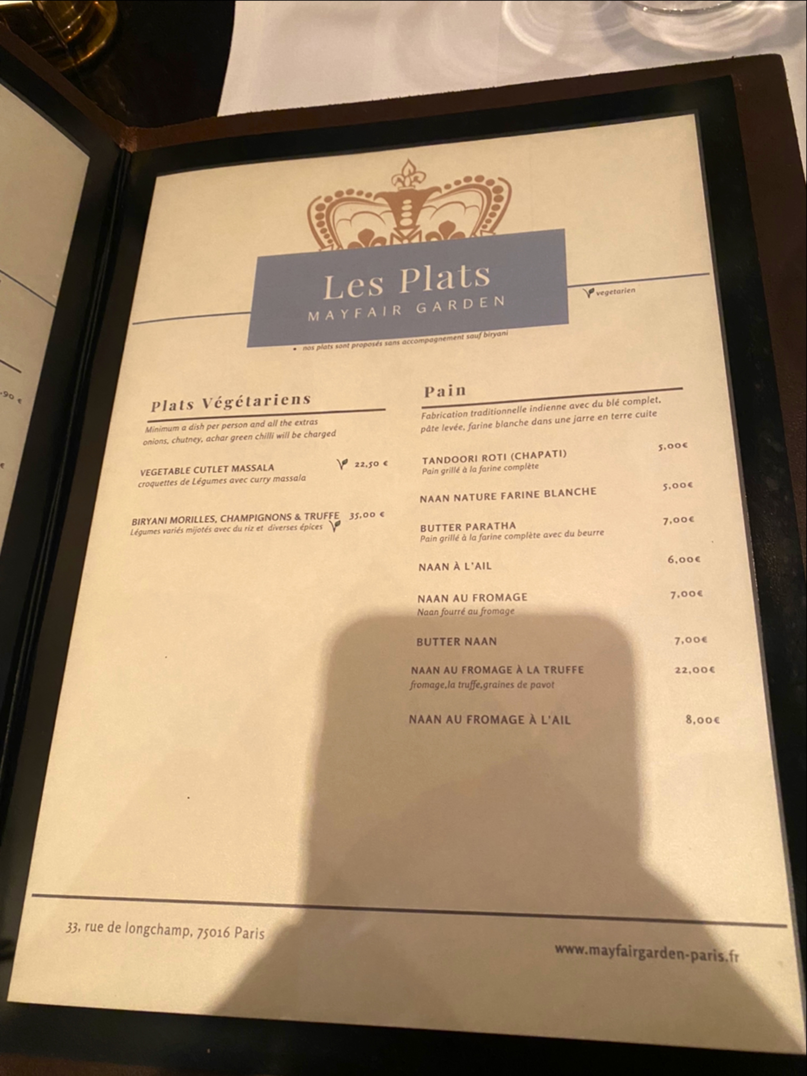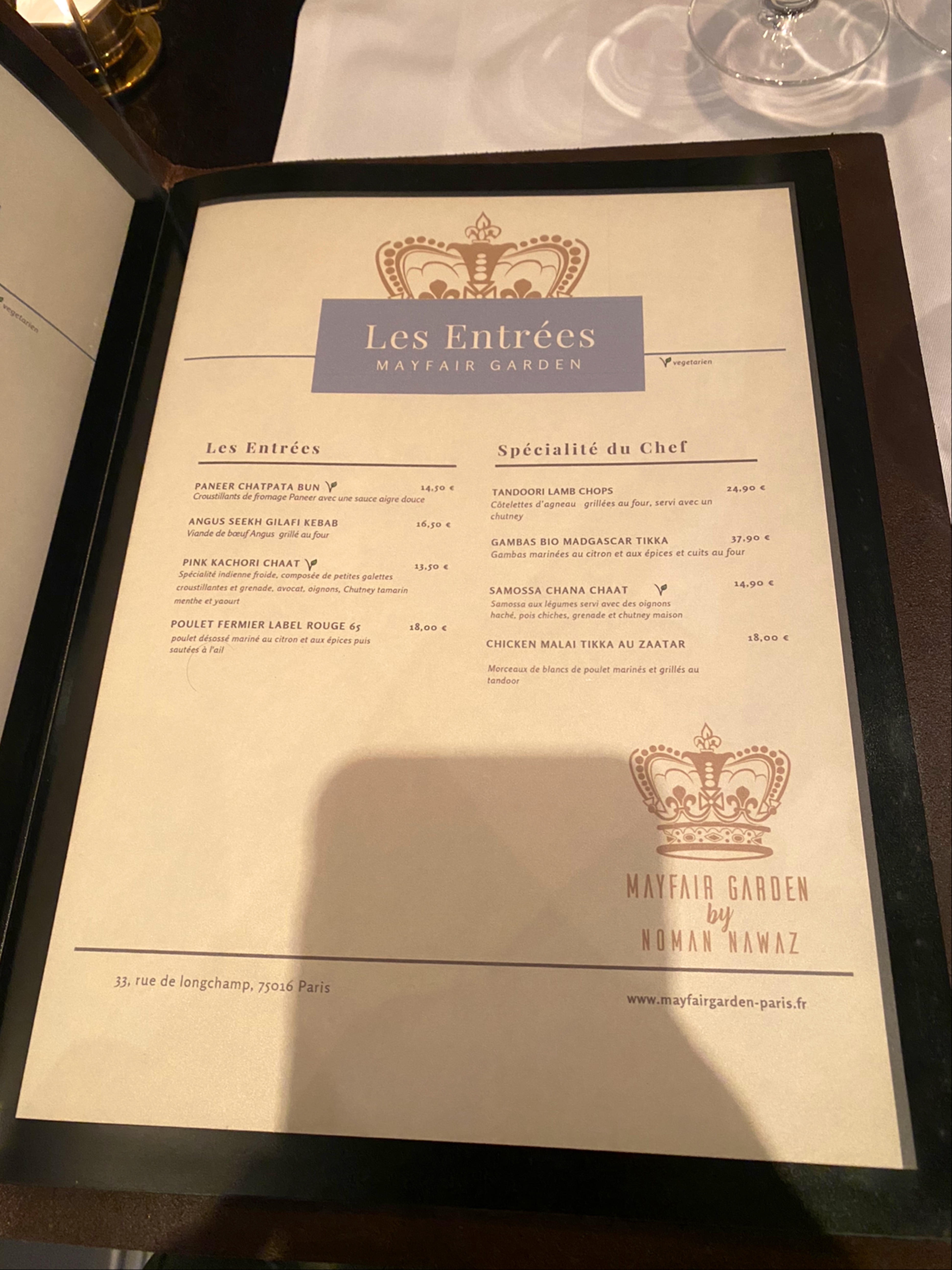 « Mayfair Garden » est un restaurant situé dans le 16ème arrondissement de Paris. Le cadre est simple mais décoré avec raffinement. La salle est spacieuse. Les plats sont goûtus et pleins de finesse. Dès la mise en bouche, c’est l’explosion de saveurs et un réel régal pour les papilles ! Quant au personnel, il est tout autant discret que présent lorsque c’est nécessaire ! Pour moi, c’est l’un des meilleurs restaurants indiens de la capitale 🤩 ! Le seul bémol est le prix excessif, mais il peut se justifier par la qualité des mets proposés !