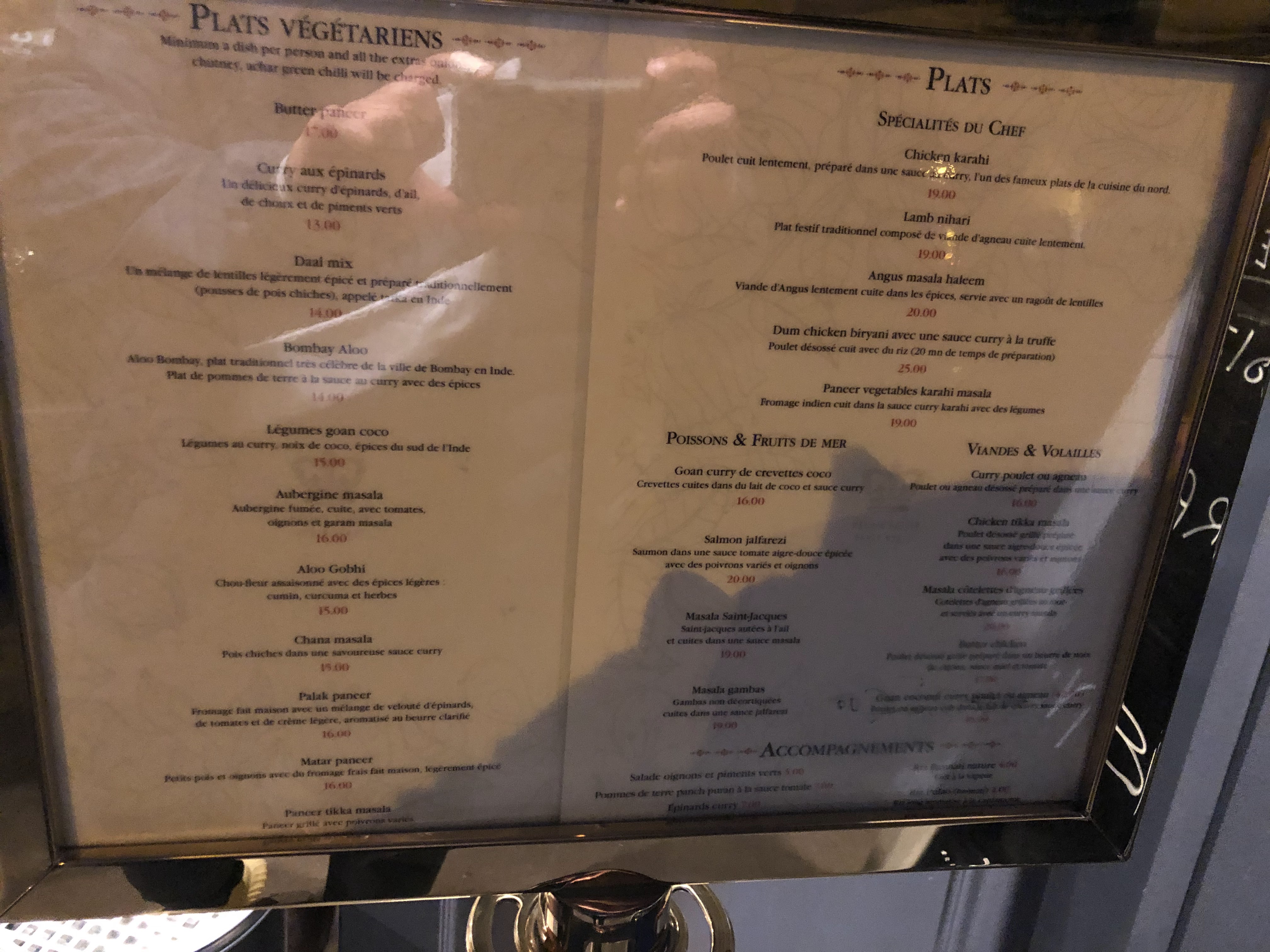 En un mot : parfait !! De A a Z tout etait parfait C’est LE meilleur restaurant indien-pakistanais de Paris. L’accueil , le service sont tout aussi excellent. Un cadre somptueux, quoi vous dire de plus a part allez y en fermant les yeux