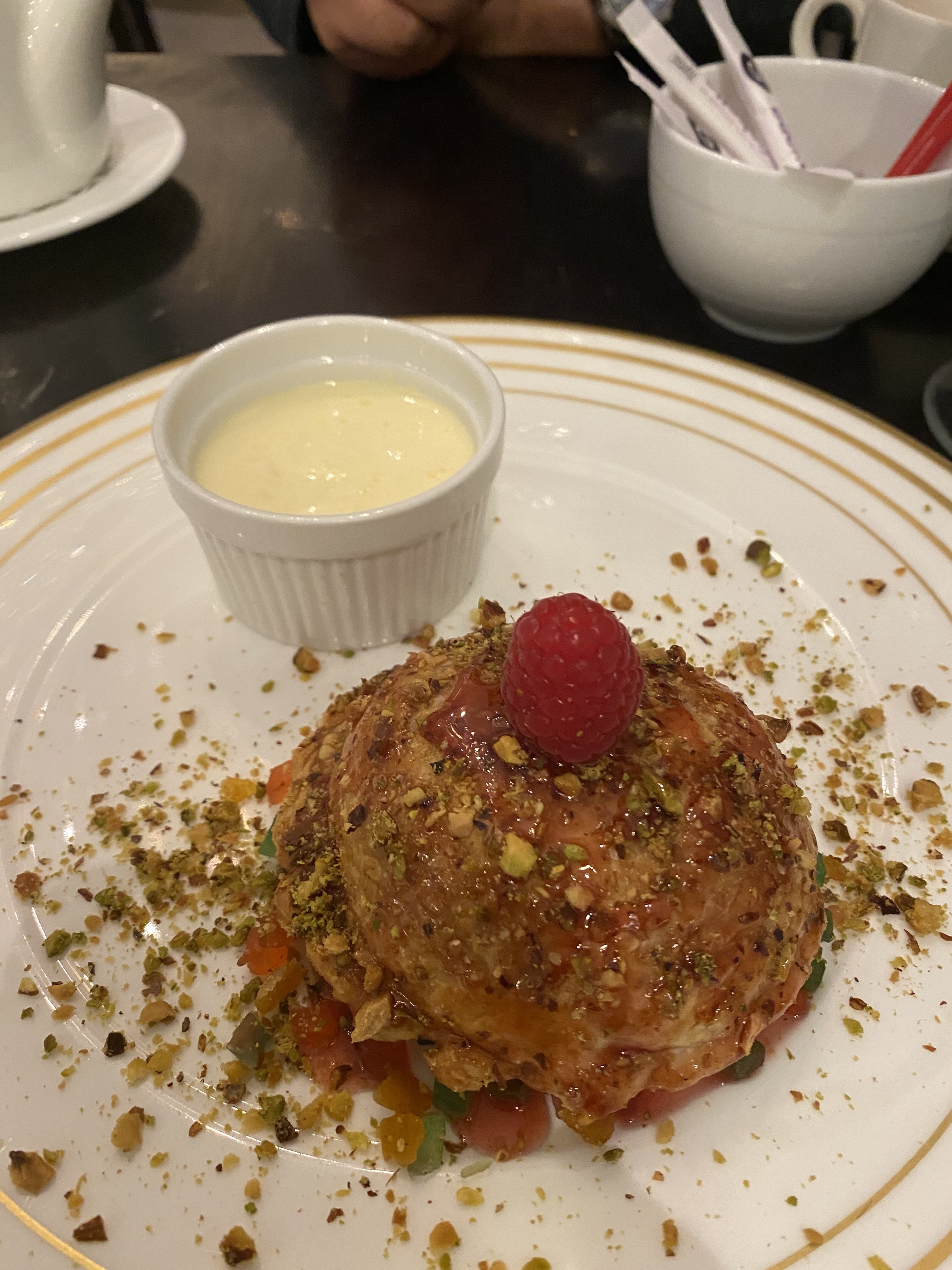 Tenue correcte exigée vous dit la confirmation de réservation => à la table voisine, il y avait un homme polygame et ses 4 femmes couvertes d'un voile islamique intégral. 🕋 Si vous tenez à l'esprit de neutralité religieuse en France, cet endroit n'est pas fait pour vous. Pas de musique d'ambiance non plus...car je suppose que ce n'est pas compatible avec l'islam radical... Niveau cuisine : bonne qualité même si un peu cher.
