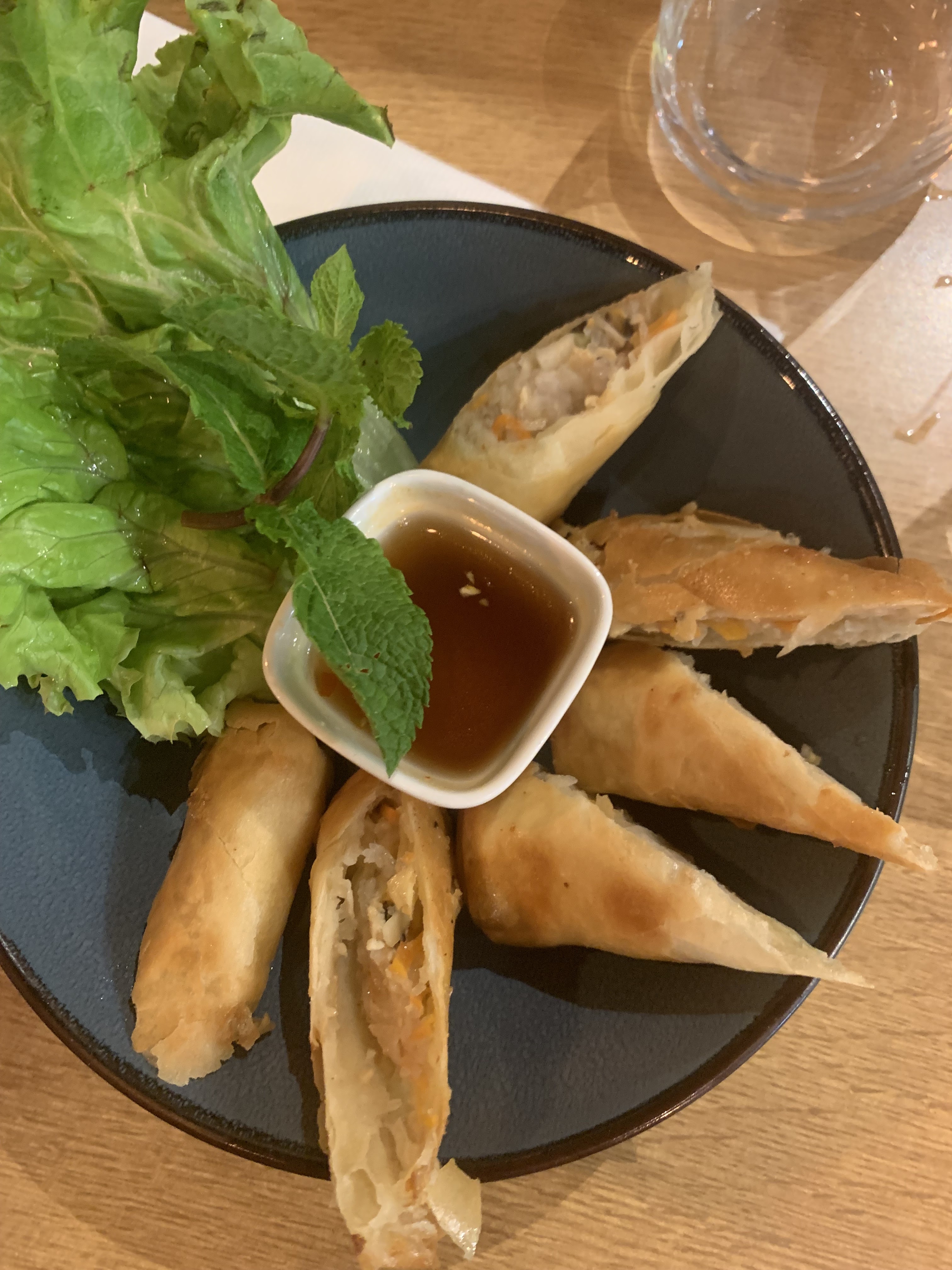 Nous avons adoré notre dîner au May Thai. L'ambiance est très animée et la nourriture est authentique et délicieuse. Les rouleaux de printemps aux légumes étaient croustillants à l'extérieur et moelleux et délicieux à l'intérieur. Nous avons mangé du saumon au curry rouge et du poulet au curry vert et ils étaient tous les deux parfaits. Le service était correct… Le serveur ne nous a pas vérifié plusieurs fois, mais cela ne nous a pas dérangés car tout était tellement bon. Nous y retournerions certainement sans hésiter.