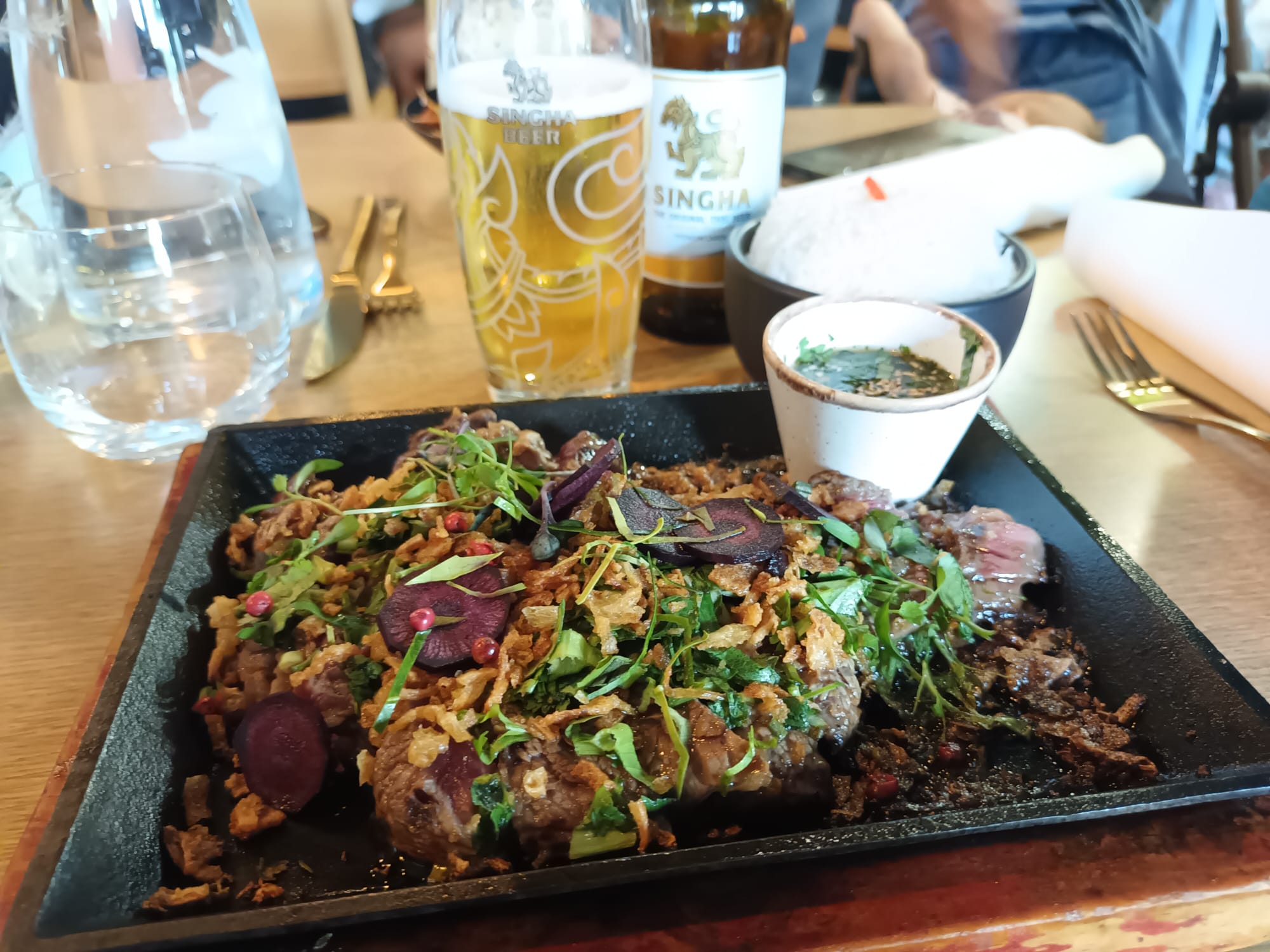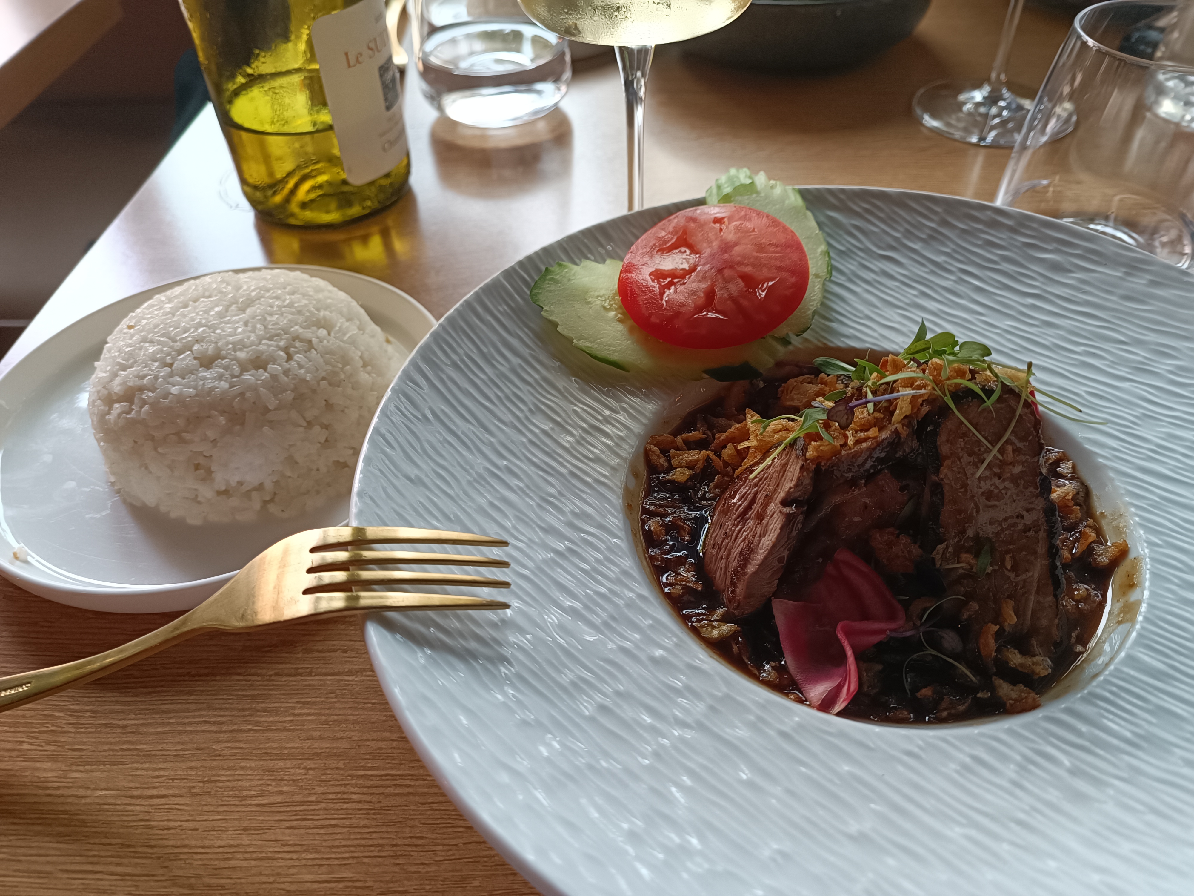 Un cadre sympa pour une cuisine exotique et gourmande ! Les plats sont très bien présentés ! Cependant, ils arrivent trop vite… on n’a pas encore fini l’entrée que déjà la serveuse nous propose la suite. « Je vous garde les plats de résistance au chaud ou je vous les laisse sur la table ? »…Alors que nous somme encore en train de savourer les entrées 😞. Ce fût une assez belle expérience culinaire mais elle ne sera pas inoubliable !