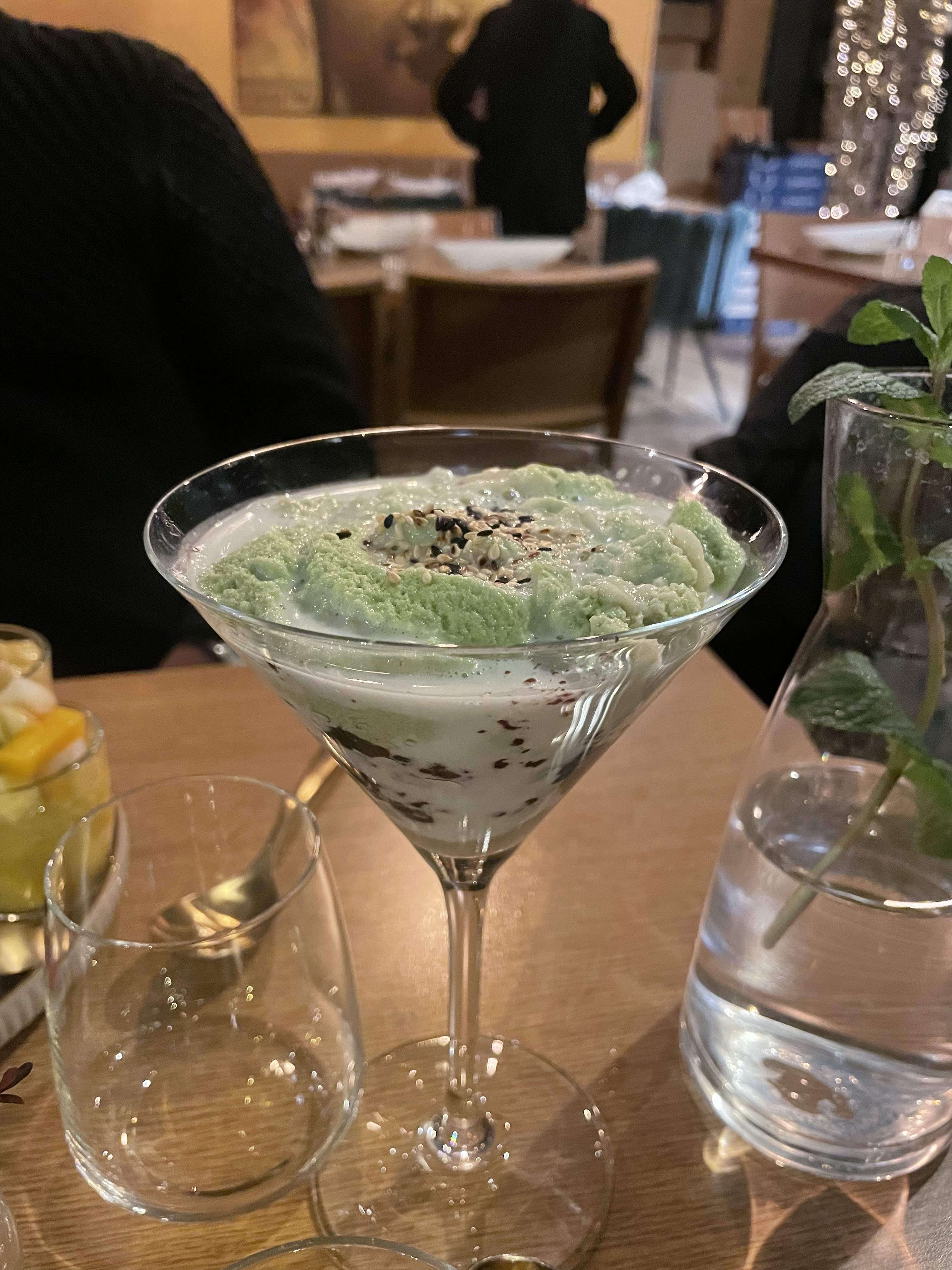 Superbe expérience dans ce restaurant thaï très à la mode. Une salle joliment décorée, un service efficace et sympathique. Les entrées étaient délicieuse, le tofu au basilic thaï avec les petits légumes très bon, et le tiramisu à la mangue un vrai délice! J’ai pris également un thé glacé au jasmin, qui était très bon.