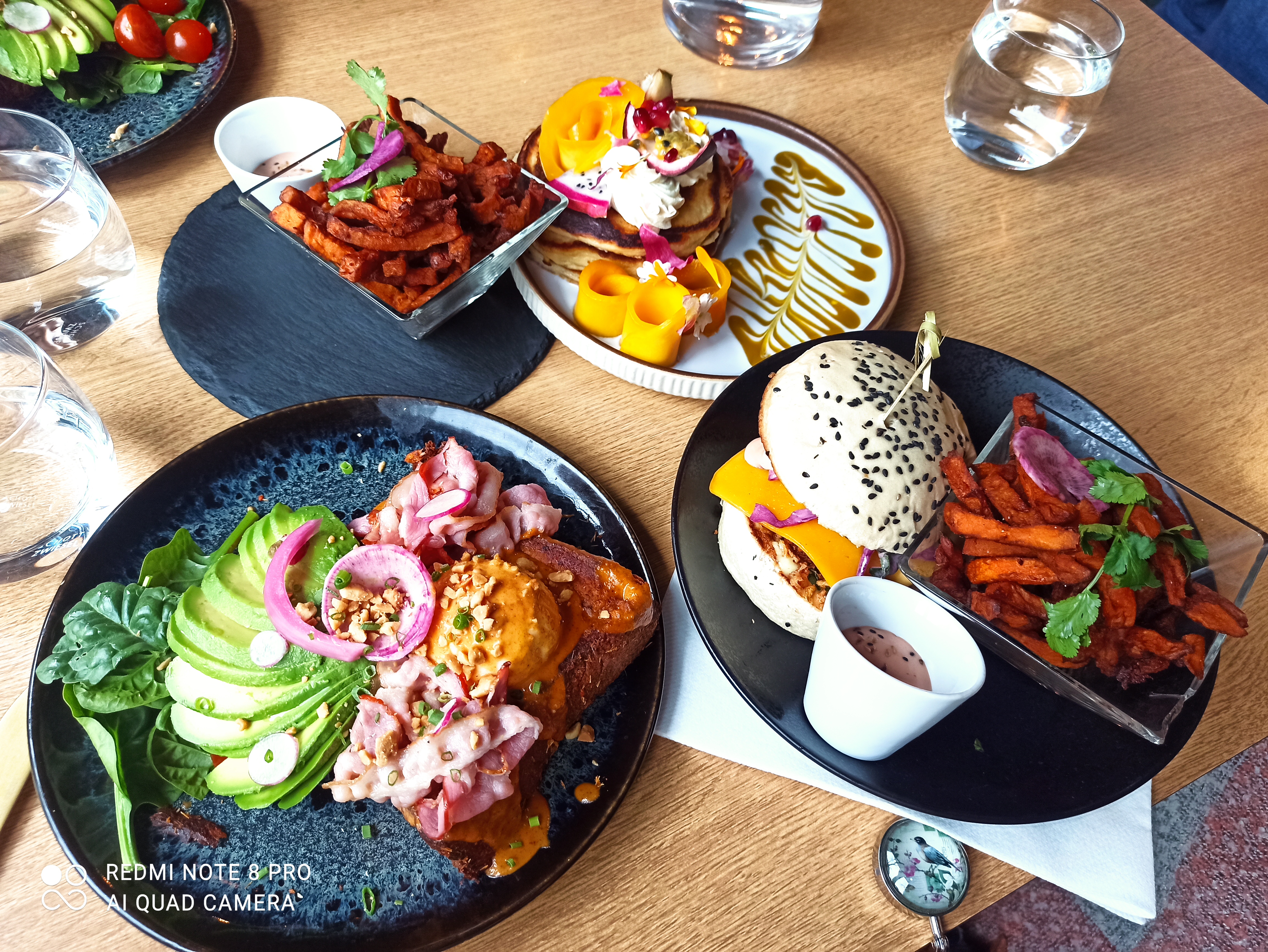 Très bon restaurant, service agréable et efficace. Nous sommes allés au brunch avec Veggie and Kai Burger et les pancakes à la mangue. Le burger Veggie était bon mais il manquait un peu de topping car il est assez cher pour juste du tofu... Les options végétariennes étaient malheureusement très limitées et le lait végétal est livré avec un +0,5€ ce qui n'a aucun sens, nous sommes en 2022.