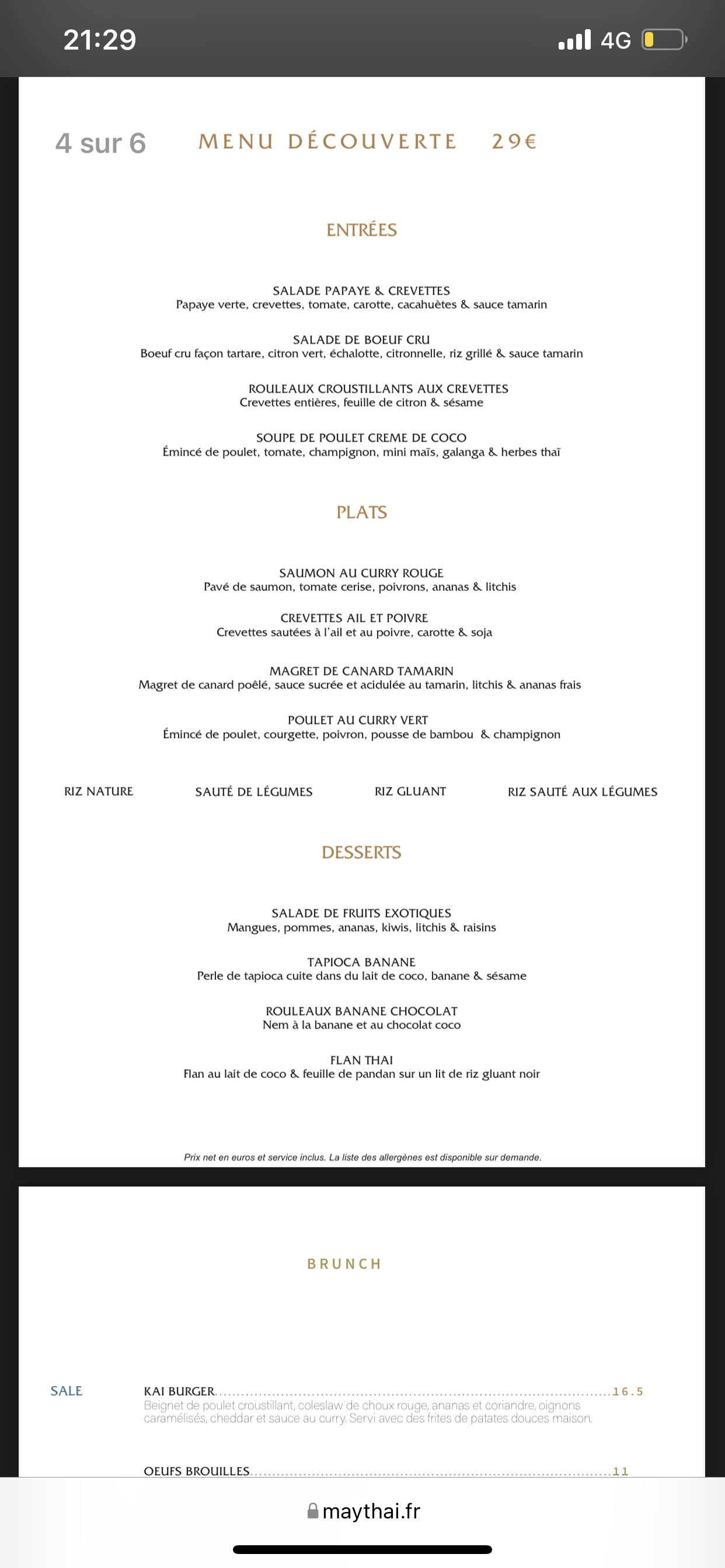 Étant de grands habitués du MayThai, nous sommes un peu déçus de notre dernier passage….. en effet, la qualité se perd. Le brunch était moins savoureux qu’avant… c’est dommage