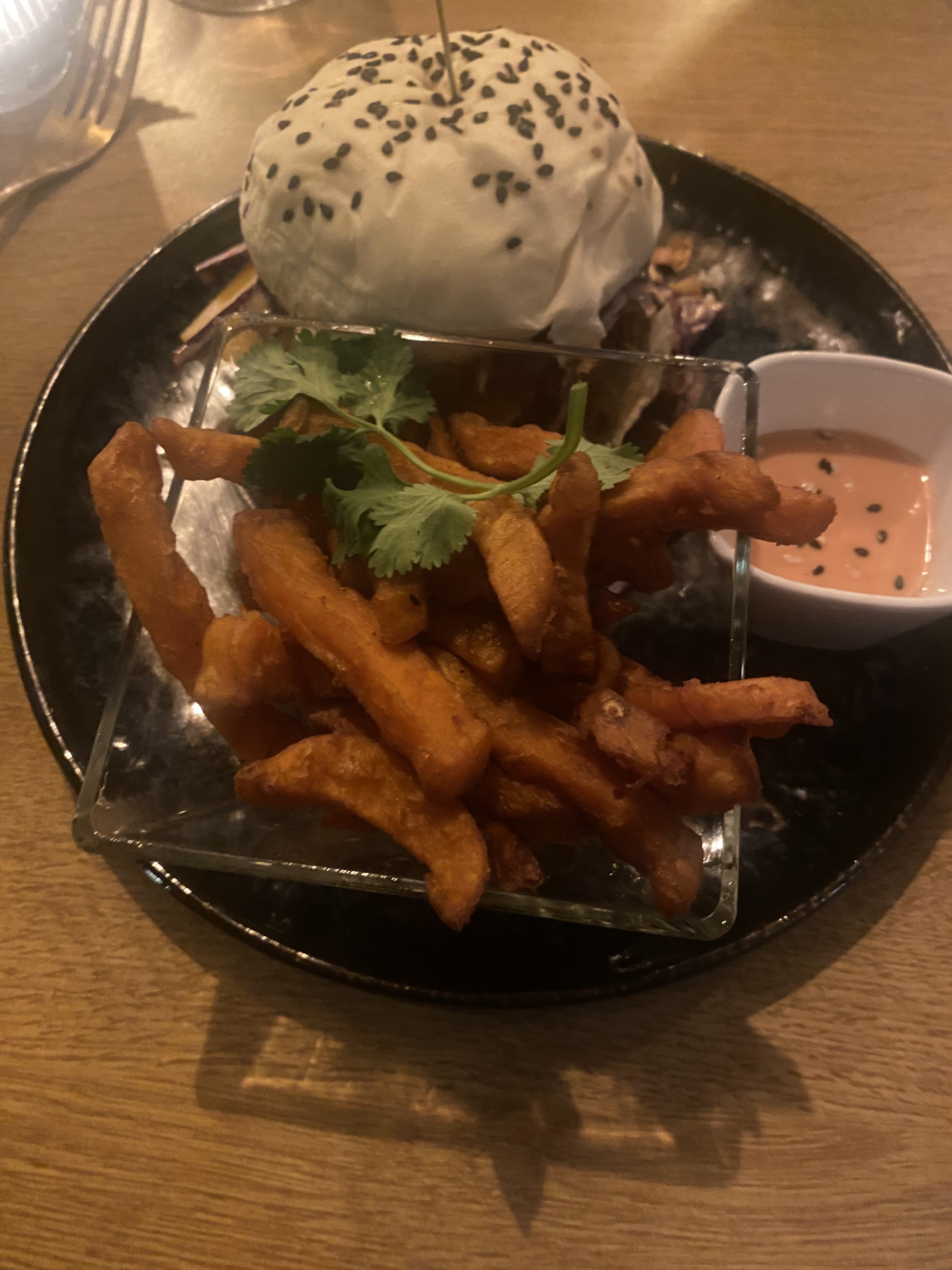 Personnel extrêmement sympathique et burger au pain bao qui avait du goût. Ils nous ont même offert un dessert après l’attente de notre entrée à partager ! Décor et ambiance aussi très cozy on s’y sent bien ! Bonne adresse que nous recommandons avidement !