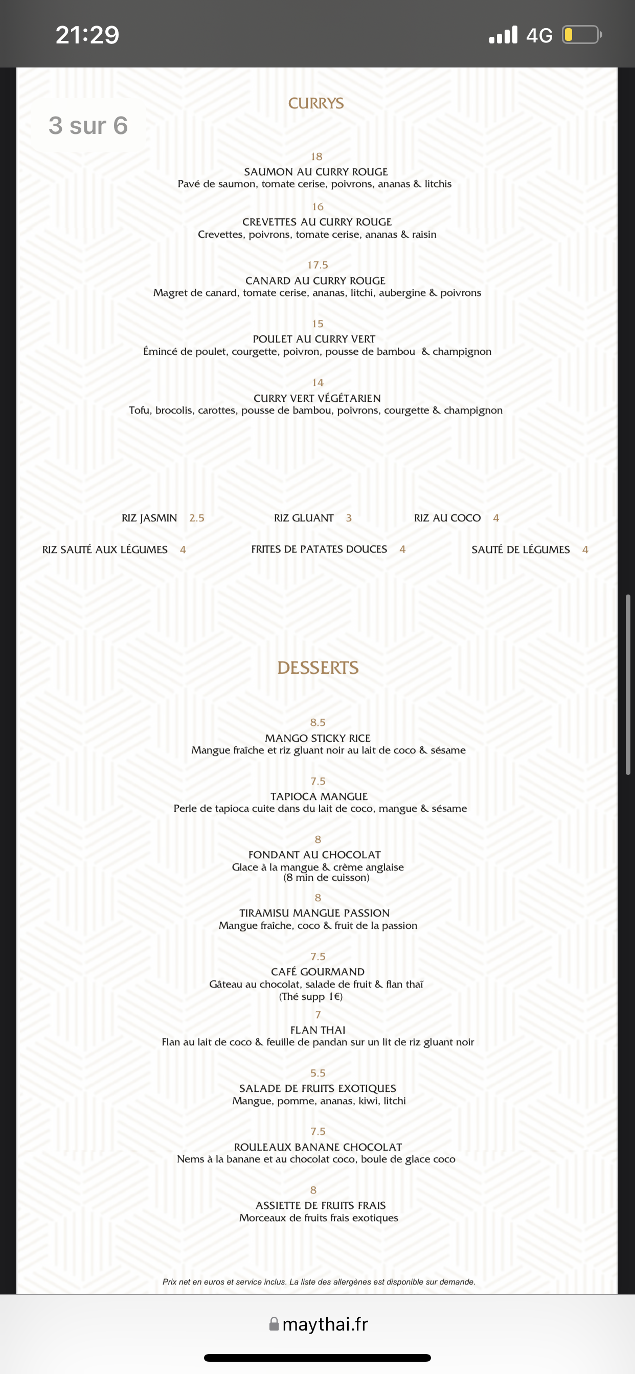 Une superbe adresse, raffinée, belle présentation et délicieux pour un prix tout à fait honnête avec un service agréable et efficace. Nous sommes sorti de notre zone de confort en prenant entrée et plat qu'on trouve un peu moins communément dans les restaurants thaï, aucun regret ! J'ai adoré le dessert mangue riz servi avec du riz noir original et bon ! Une adresse à retenir !