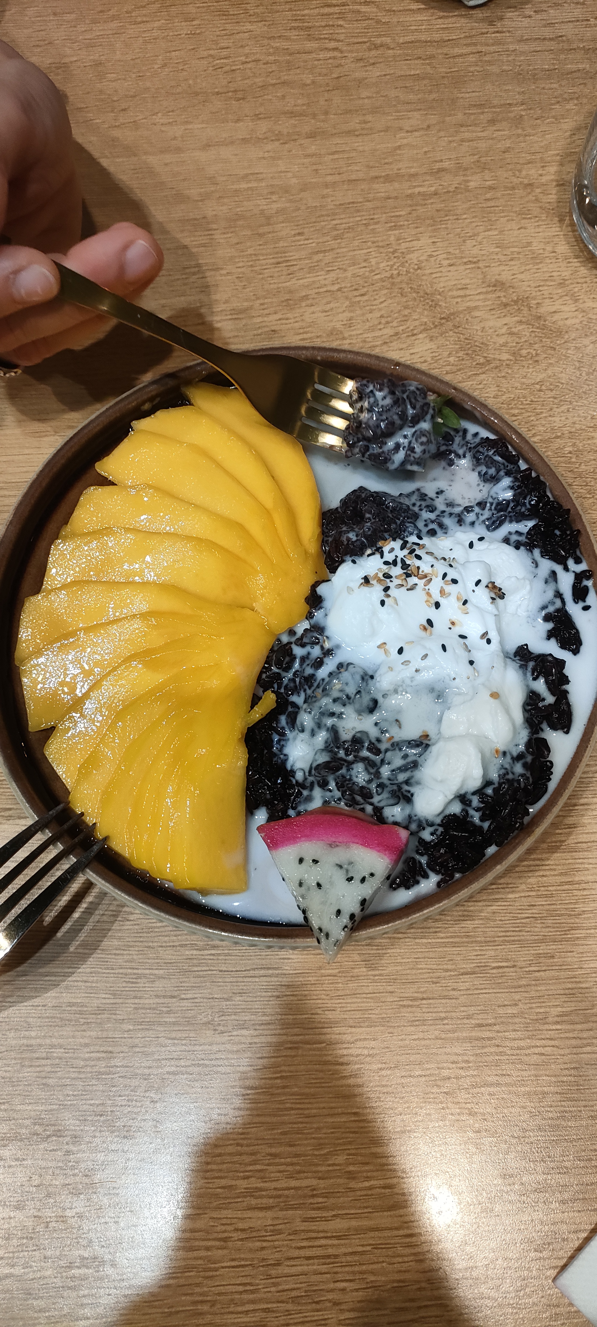 Tout était délicieux du plat principal au dessert. Les prix sont corrects et le service était également excellent. Je recommande vivement le pain français, le tiramisu à la mangue et le riz gluant à la mangue. mes amis et moi étions heureux d'être venus et nous reviendrons à coup sûr ! Il est indispensable de réserver à l'avance. merci pour l'expérience culinaire 😍