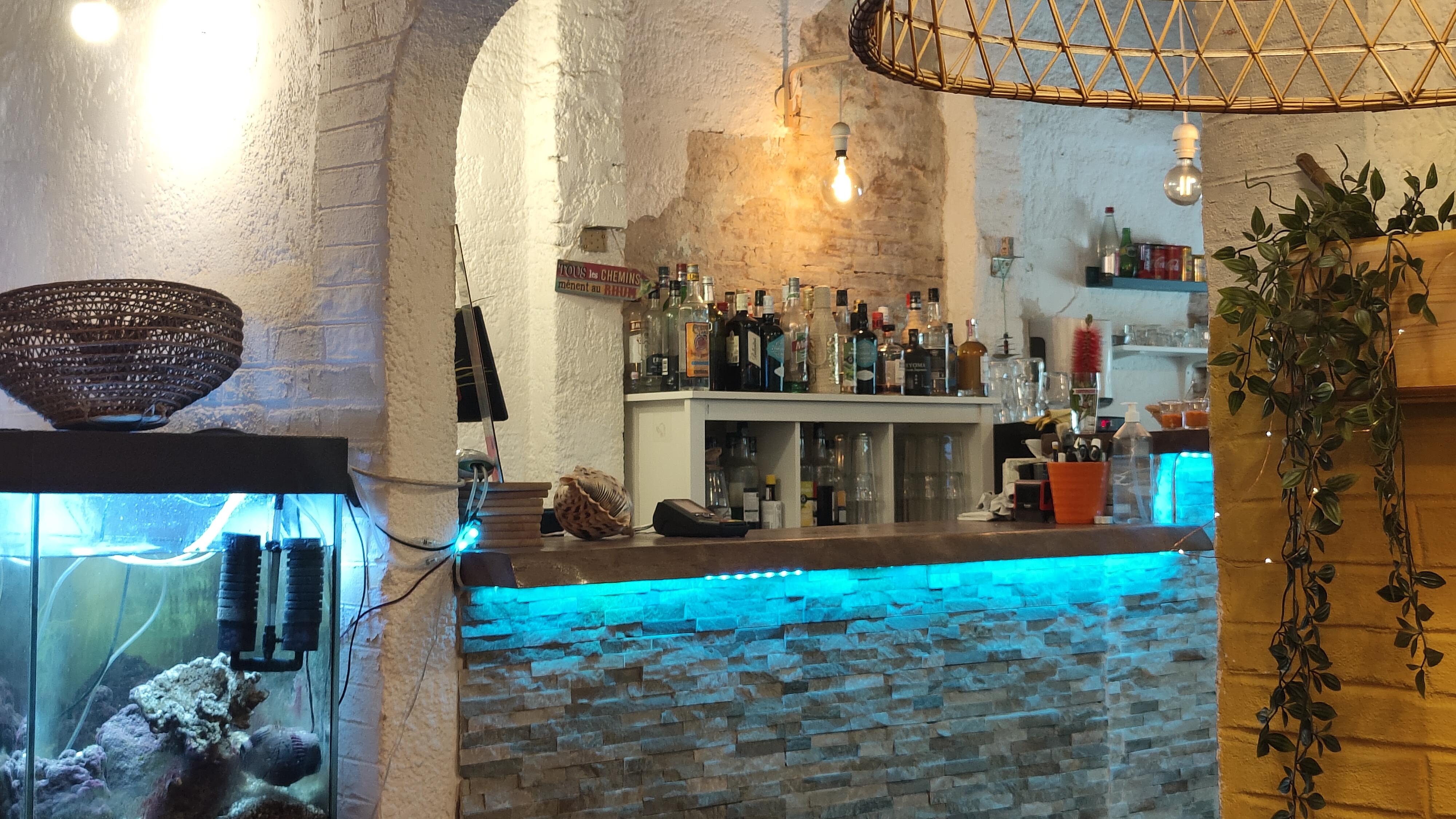 Très bel endroit, super terrasse cachée qui donne une belle ambiance. Les cocktails sont tops, la cuisine aussi. Le service est rapide et les assiettes bien présentées. Petit bémol, la gérante n'est pas agréable, elle soupire et nous a donné l'impression que nous étions de trop les deux fois où nous y avons été. C'est dommage pour un restaurant si sympa. Les autres serveurs sont gentils et souriants. Autre hic, ils gardent un gros mérou dans un minuscule aquarium dans lequel il peut à peine de déplacer. C'est vraiment triste pour une espèce protégée en Méditerranée...