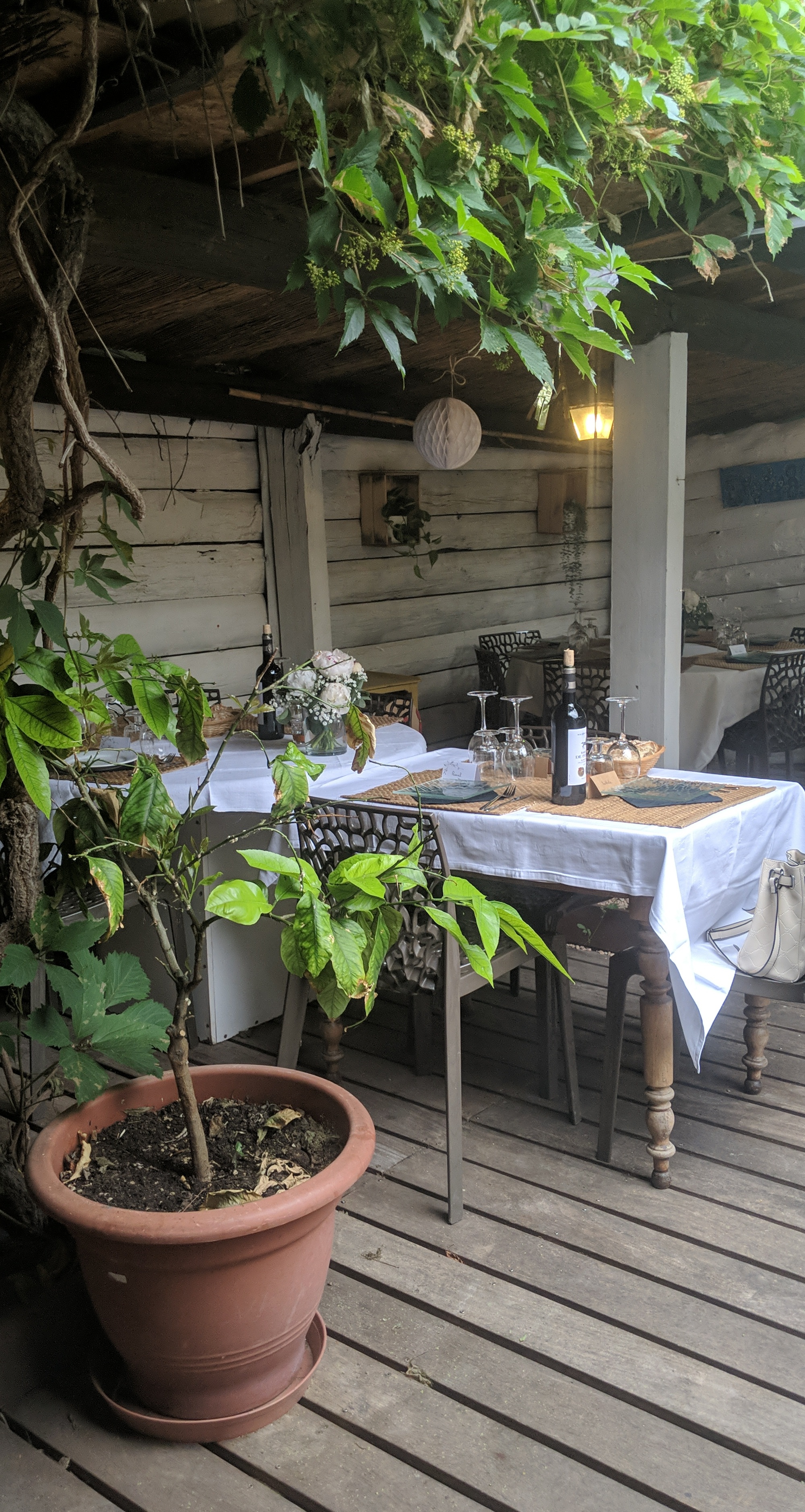 Une petite cours en plein air au calme, en pleine période estivale ça existe.. Mais je préfère la cheminée en hiver.. Cuisine de Rodrigue et Maurice, exclusivement de produits frais, Accueil sympa, une adresse à découvrir