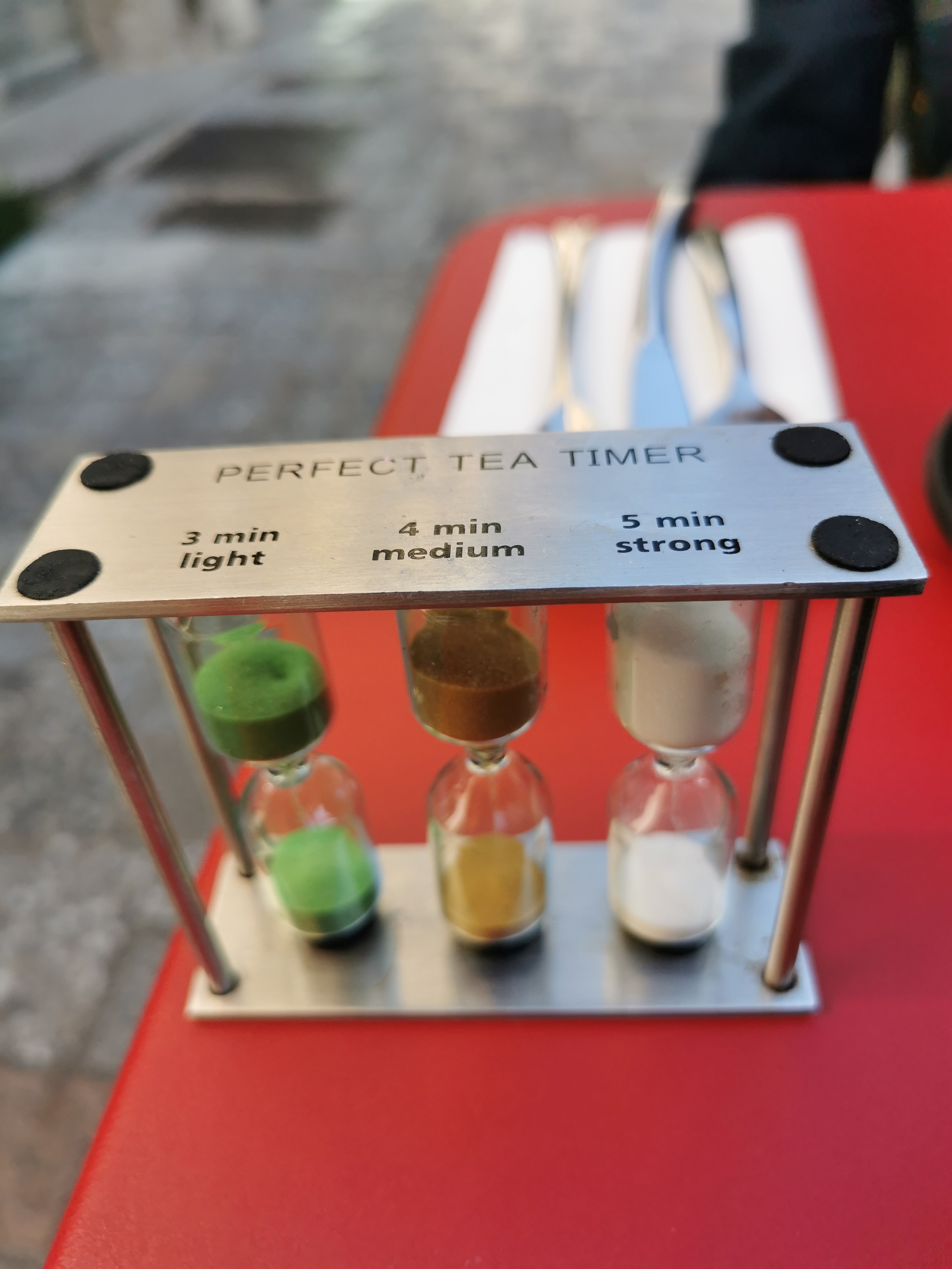 Vous cherchez un endroit où bruncher à Arles ? Mazette est le lieu qu'il vous faut ! Des brunchs tous les jours ! Et des plats en plus le dimanche comme les œufs Bénédicte (voir la photo) qui sont délicieux !! Comble du raffinement, vous aurez un sablier pour la bonne infusion que vous préférez entre léger, moyen et fort (voir photo) !! La diversité de choix pour le thé est très satisfaisante. J'ai aussi craqué pour le granola aux fruits, un régal (dernière photo)... Tout cela avec un service sympathique et pour un prix raisonnable entre 20 et 25 euros par personne (pour une thé, un granola et des œufs Bénédicte). La cerise sur le pancake : nous étions en terrasse au soleil sur une petite place qui donne sur une rue, un peu passagère en voiture, le seul bémol. Bref, un moment très agréable que je recommande vivement !