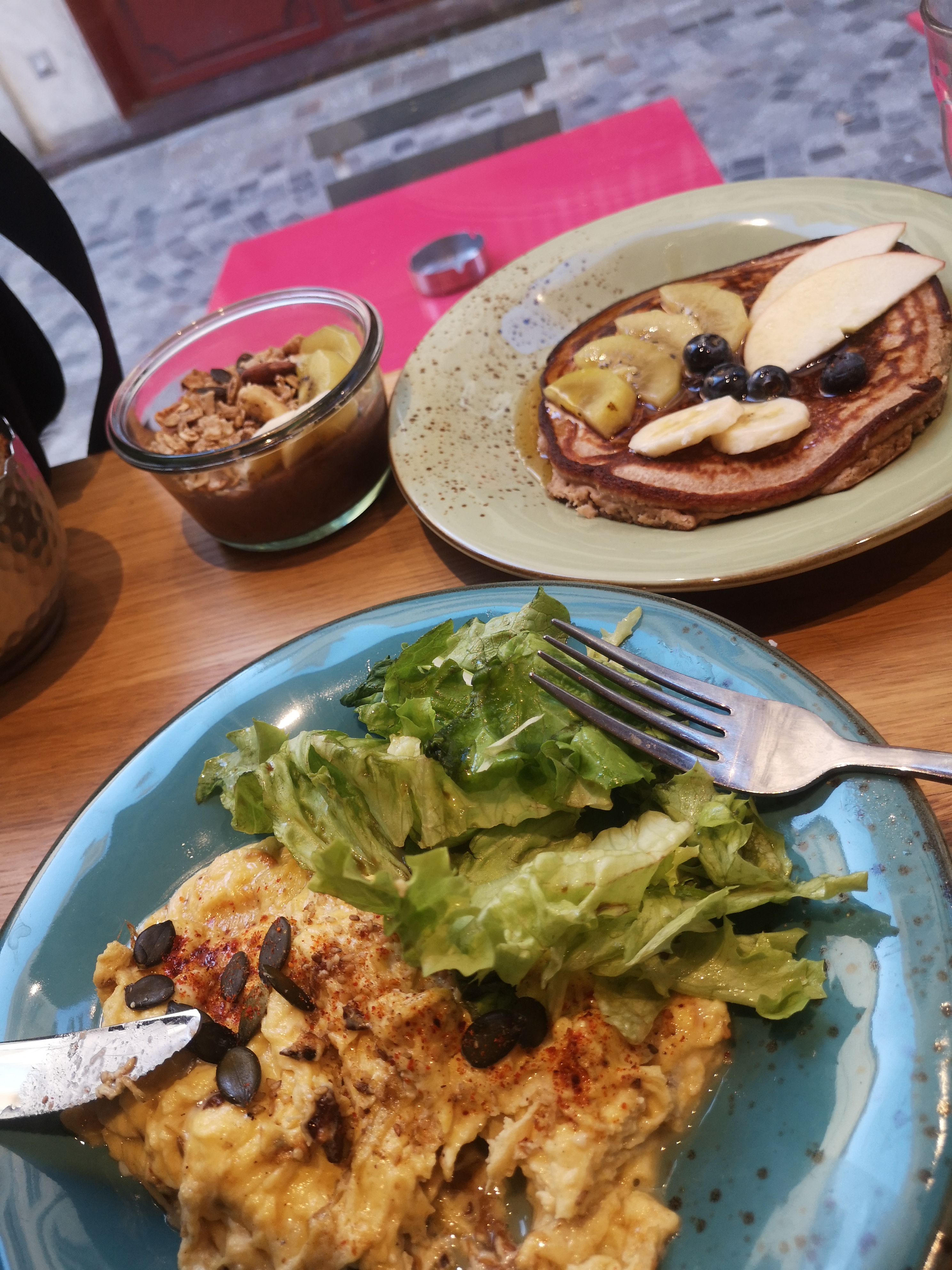 Joli concept et proposition pour Arles. Malgré les commentaires positifs, il y’a toutefois des éléments à améliorer : • Service très lent • Des ruptures de stock pour certains plats pour un dimanche de brunch c’est dommage de n’a pas anticiper • Pancake à l’unité, peu cuit • Globalement les prix sont élevés • L’intérieur peut être mieux maintenu en terme de propreté (passage entre la cuisine et les WC qui d’ailleurs étaient très sales, sols à nettoyer etc) Bon courage :)