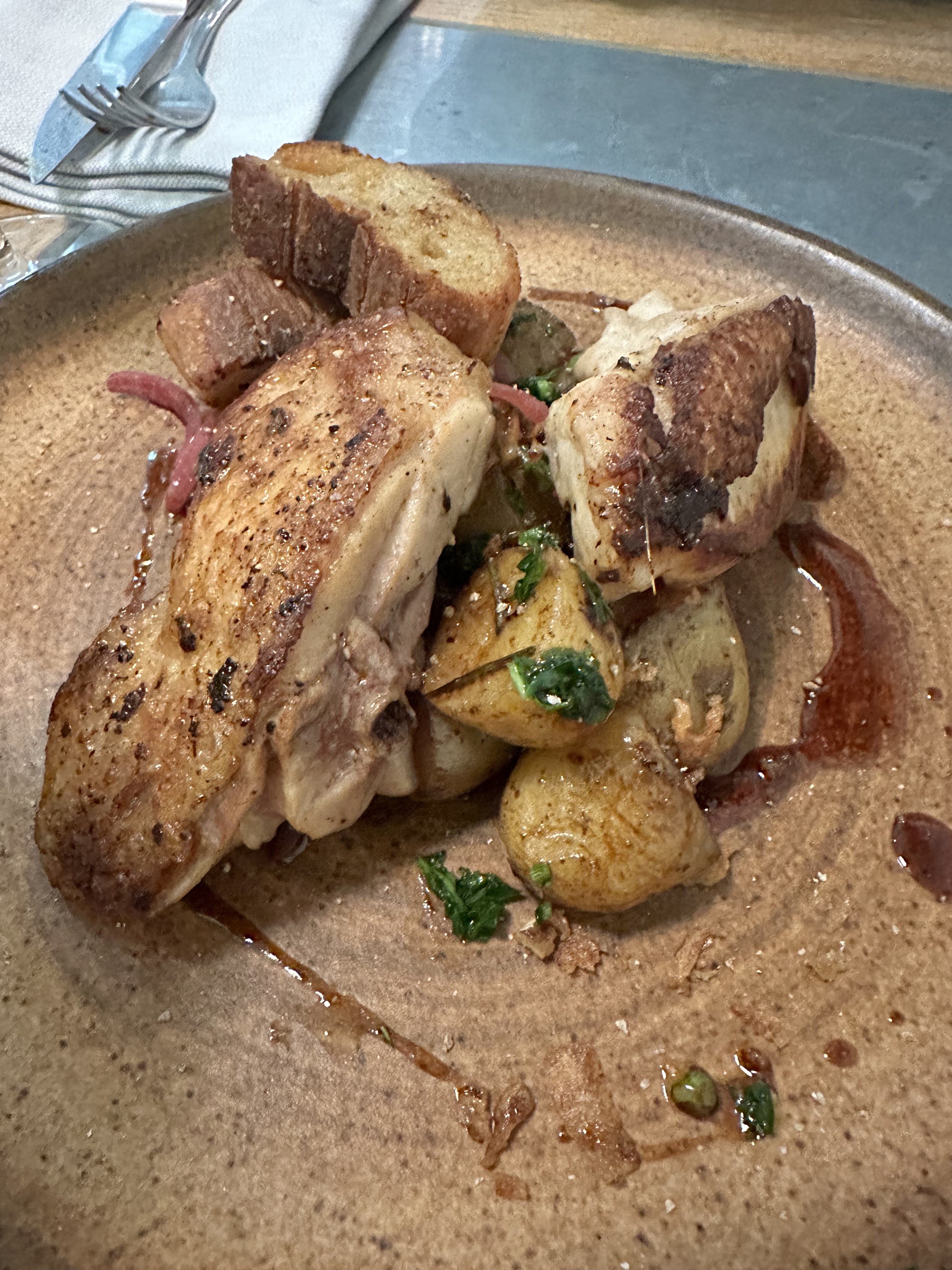 Nous avons beaucoup apprécié dîner ici un soir à Annecy. J'ai eu le poulet et R le poisson merlu, avec du savoureux pinot noir. C'est un très petit endroit mais il faisait beau et nous avons eu une place dehors. Toute cette rue est également idéale pour regarder les gens.