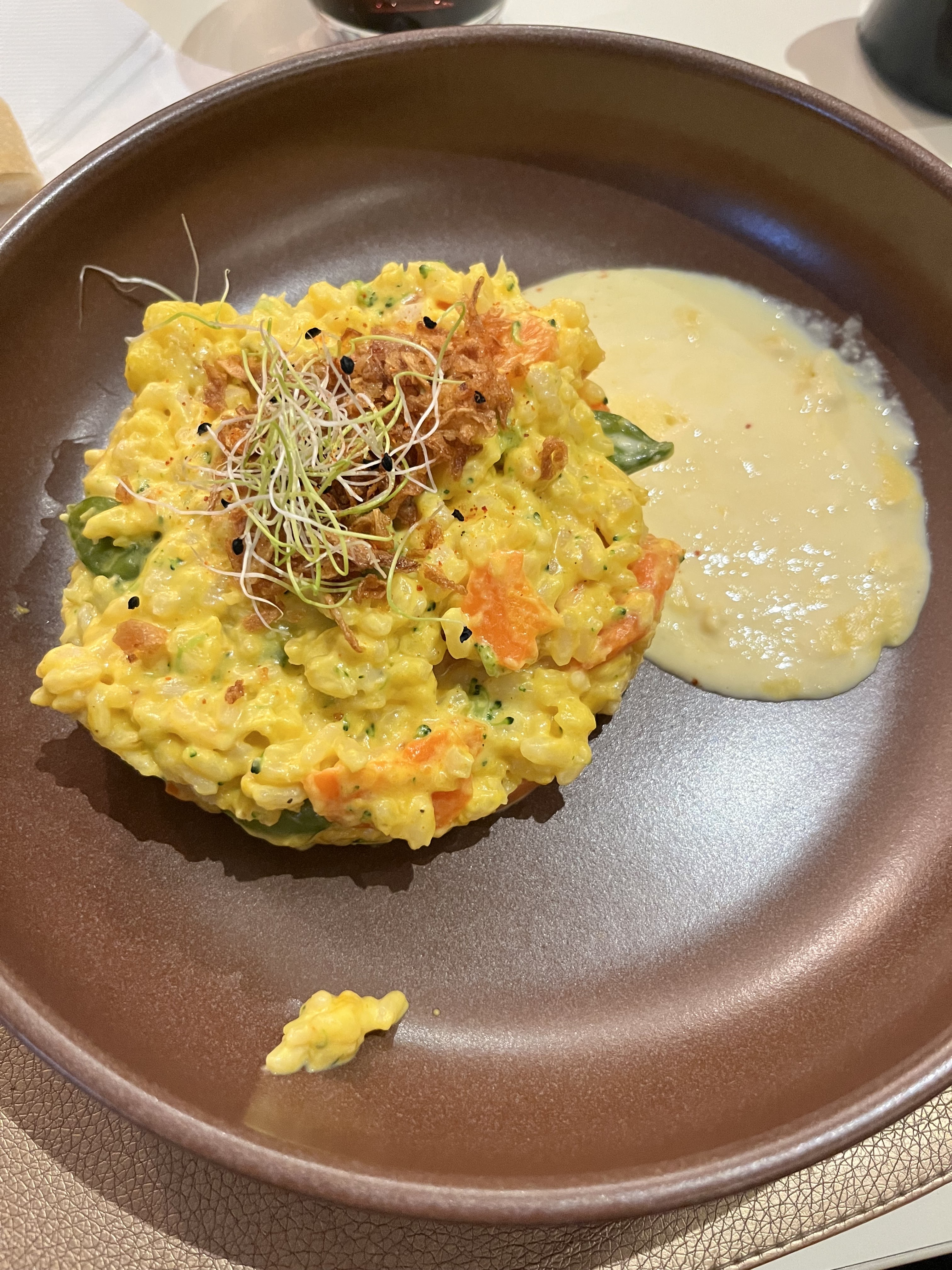 Service très attentionné. Assiettes joliment dressées. On a beaucoup aimé le risotto végétarien et sa crème de maïs, ainsi que les desserts ! Très bon rapport qualité prix.