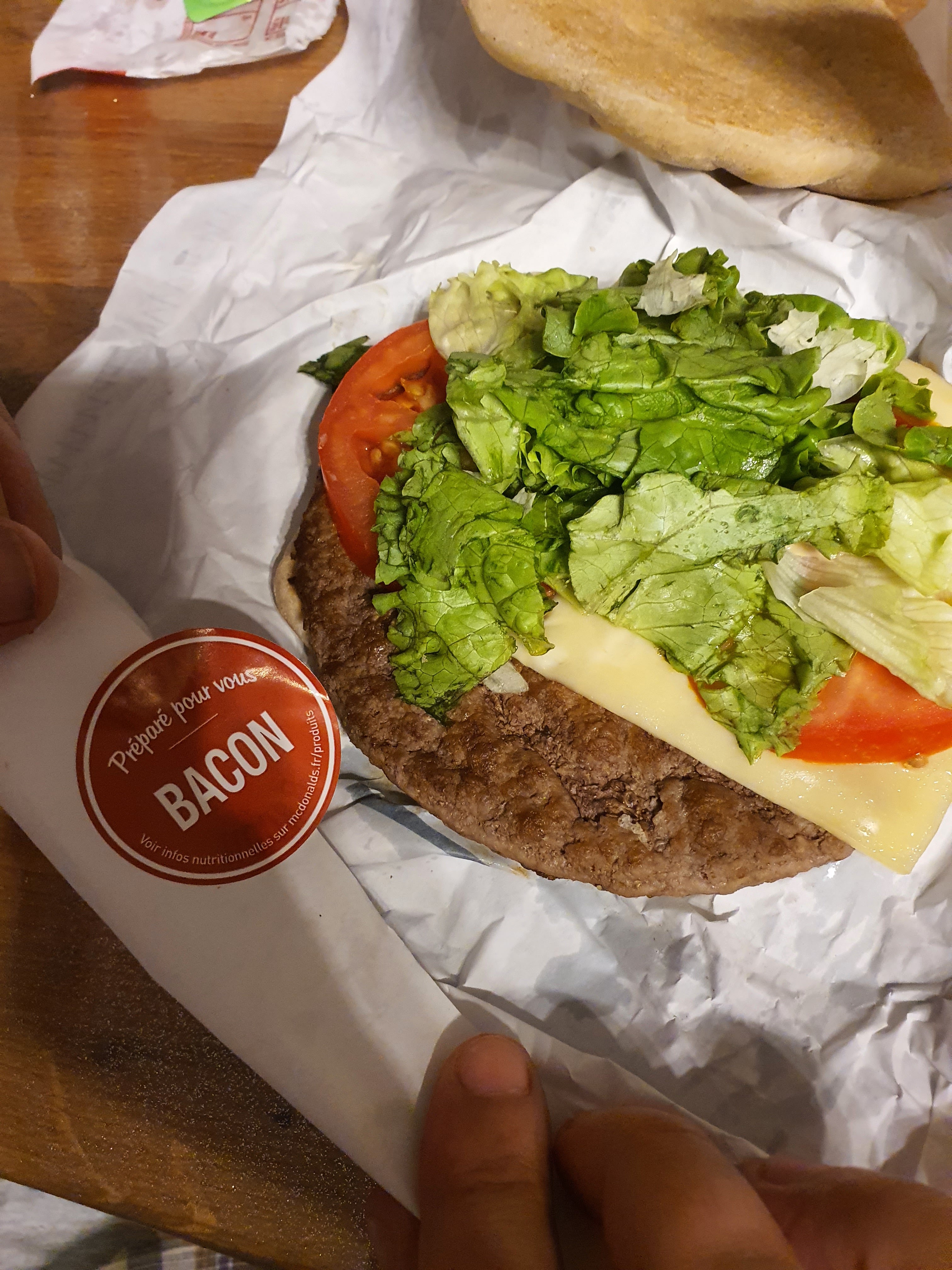 Un hamburger à huit euros qui baigne dans l’eau et sauce péta tous alors que je mange des frites restaurant, si vous avez très faim