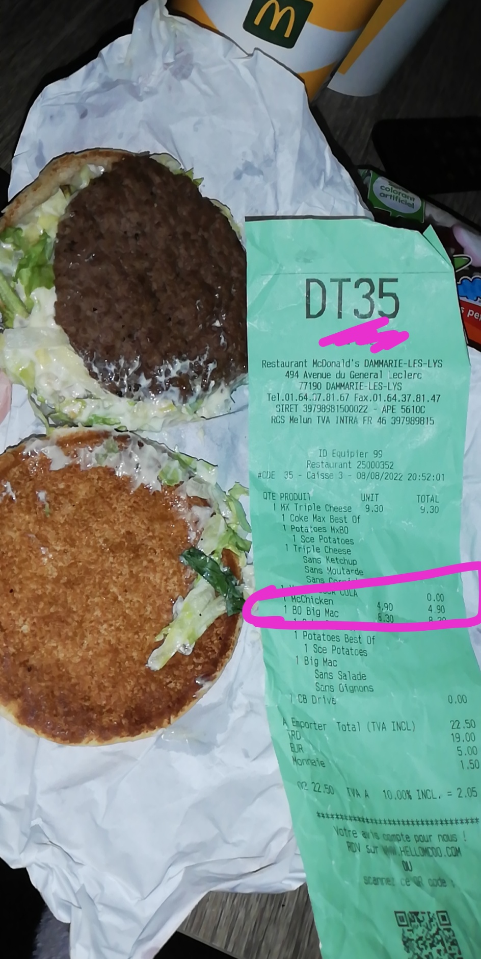 Lundi 26 août, commande à emporter. J’habite à quelques mètres du McDo. Frites froides, pas de glaçons dans mon coca, et surtout j’ai commandé un double cheese et la caissière m’a donné un simple cheese, sans me le préciser bien sûr... Je suis pas content !